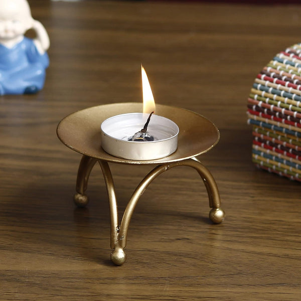 Handcrafted Golden Metal Tea Light Candle Holder Stand