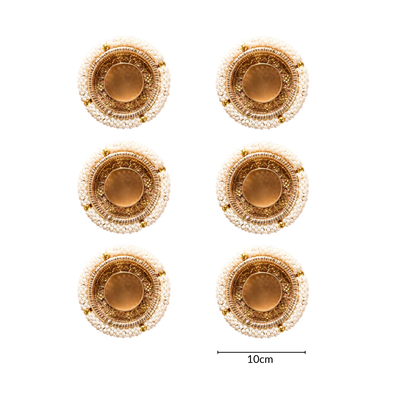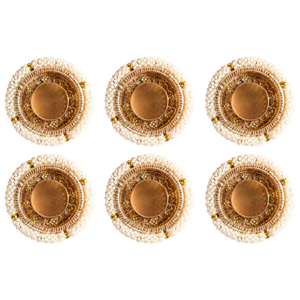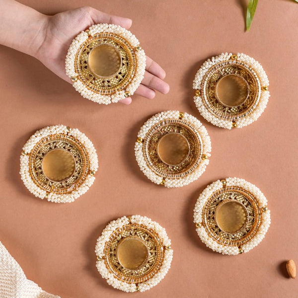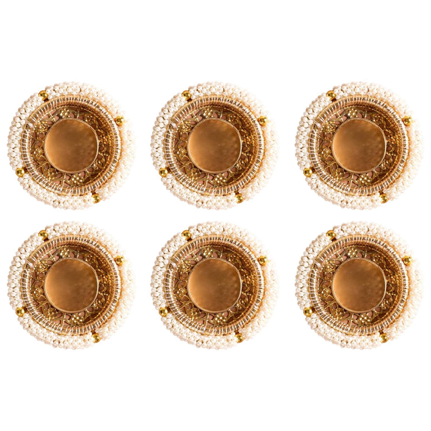 Metal, PVC Pearl Tea Light Holder Set of 6, Diwali Decoration Items for Home Decor