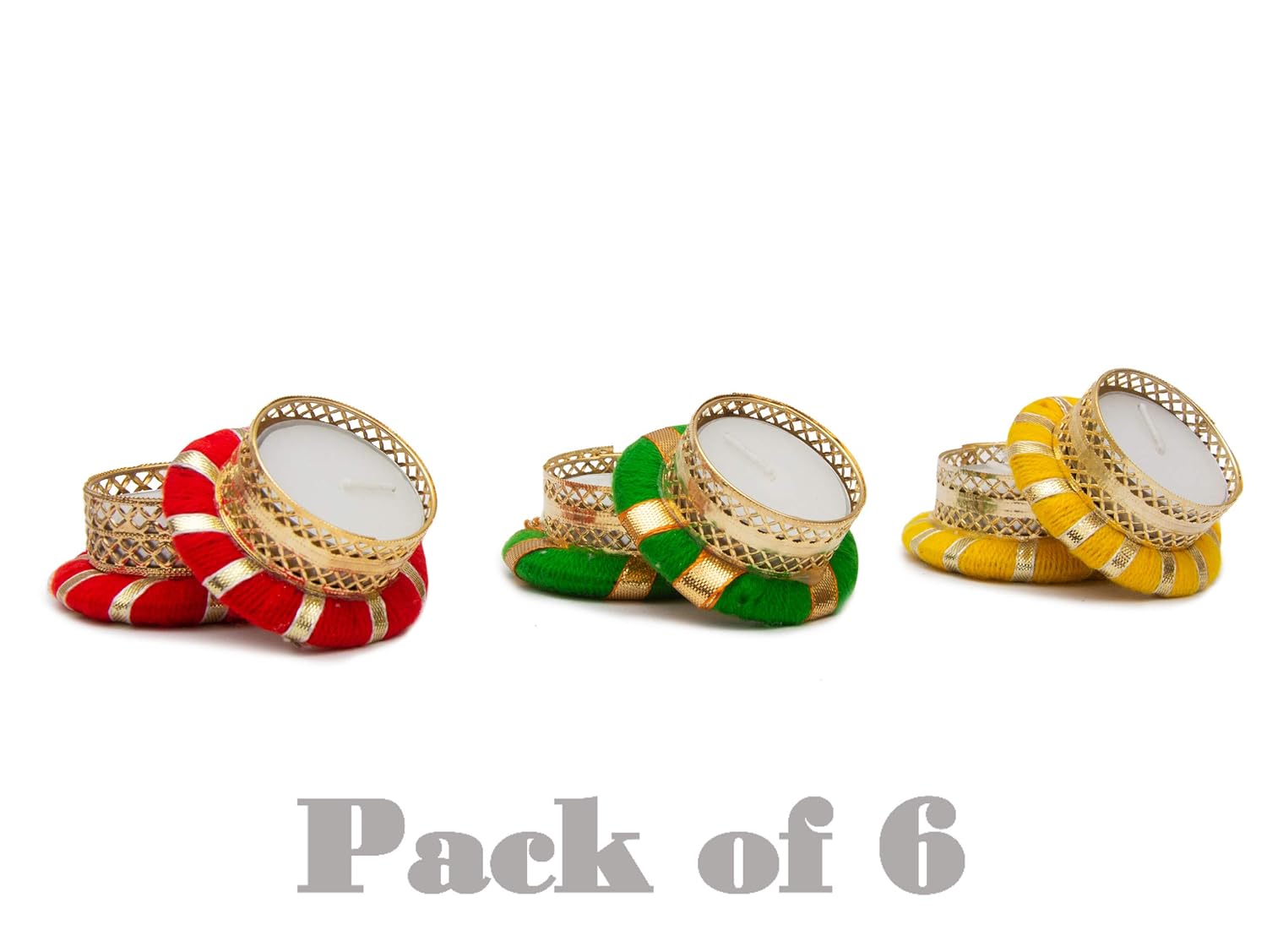 Metal Tea Candle Holder and Diwali Decoration Items Traditional Designer Diya for Decor - Set of 6