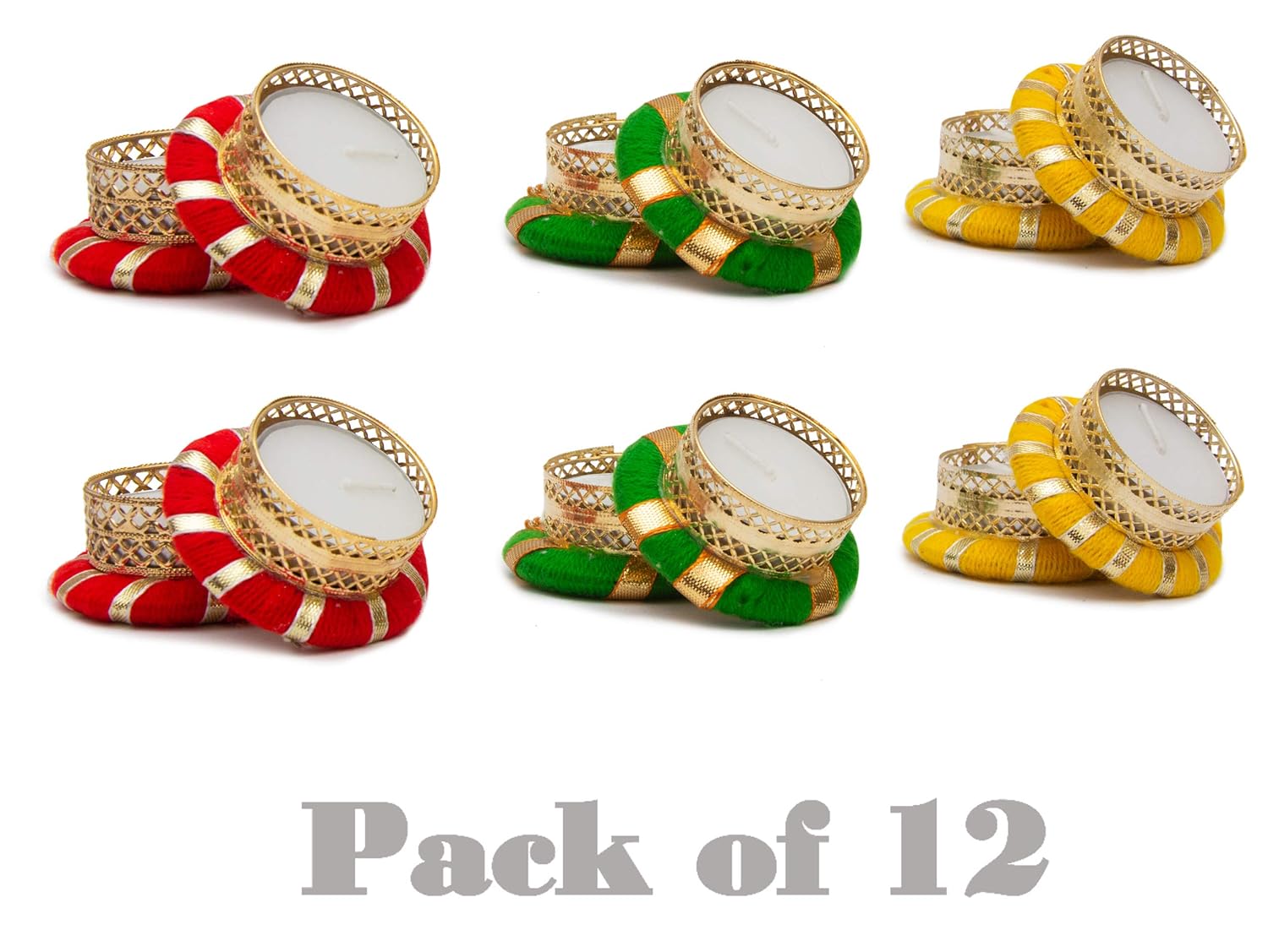 Metal Tea Traditional Designer Candle Holder and Diya , Multicolour, Set of 12
