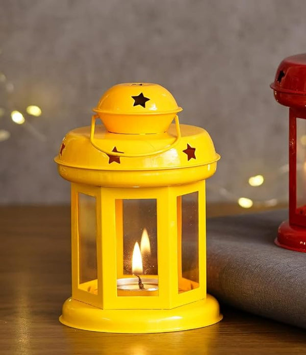 Moroccan Lantern, Tealight Candle Holder with Tealight Candle for Home Decor and Gift - Yellow
