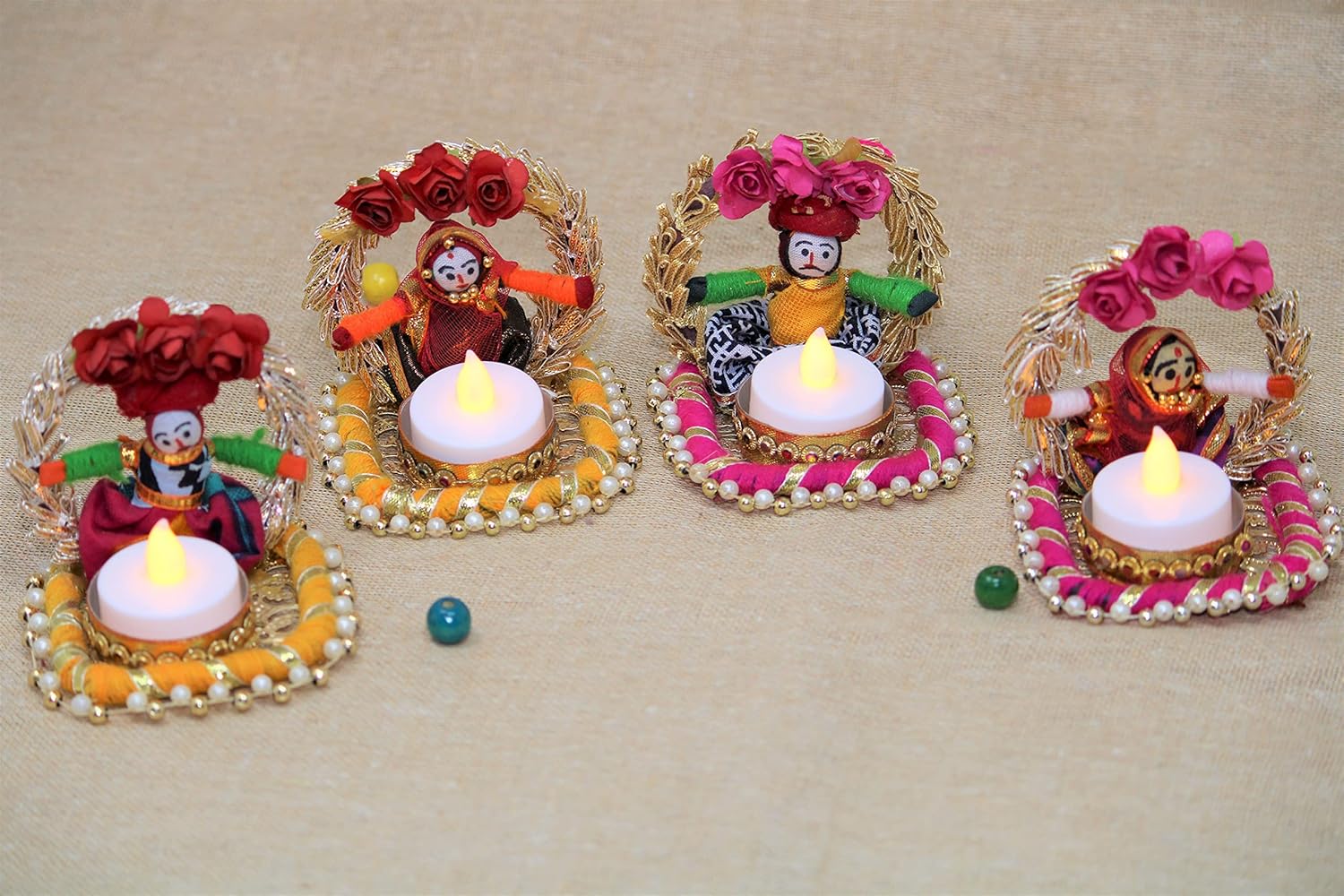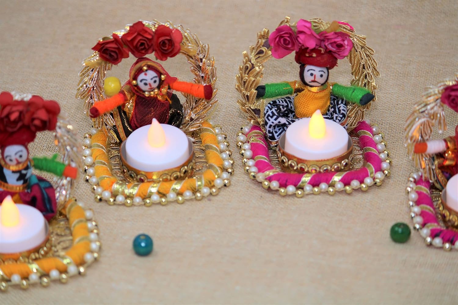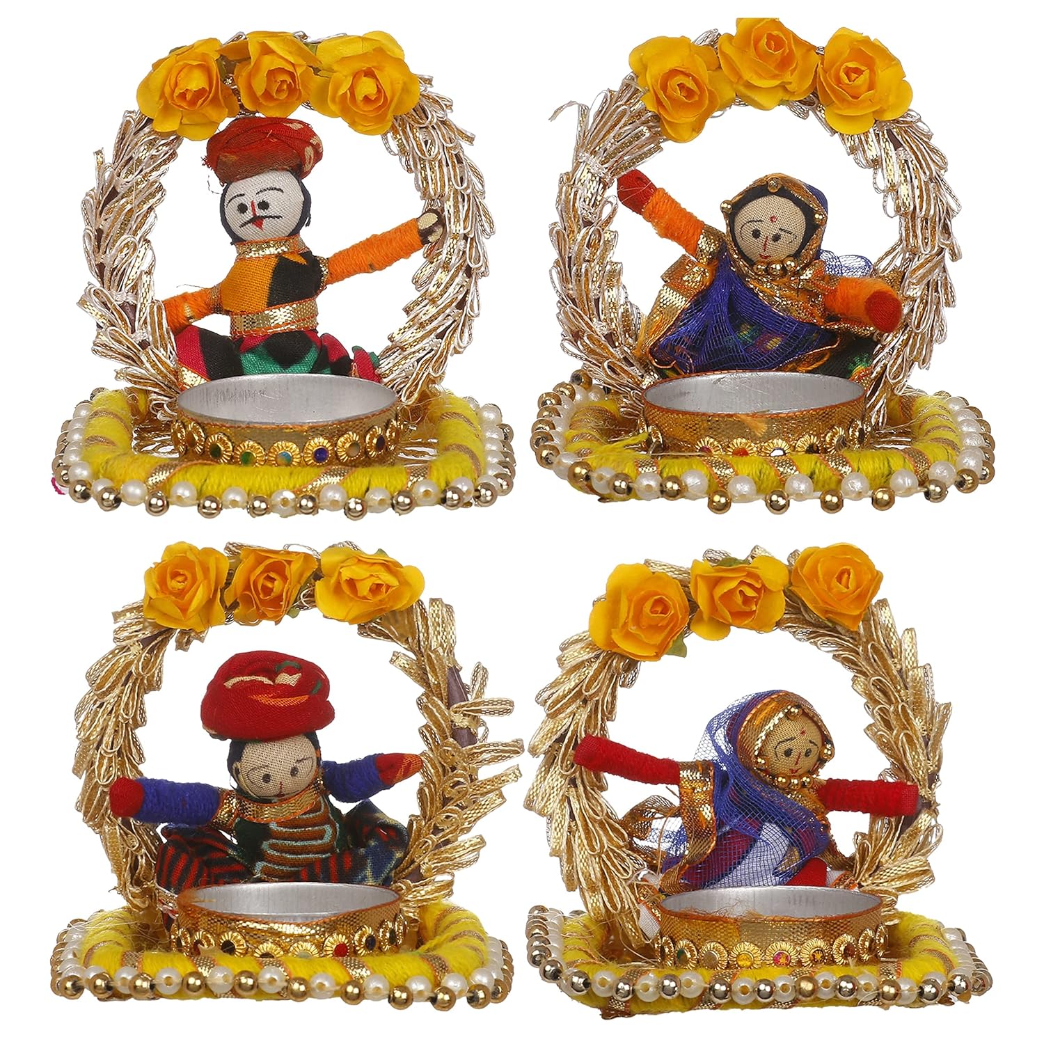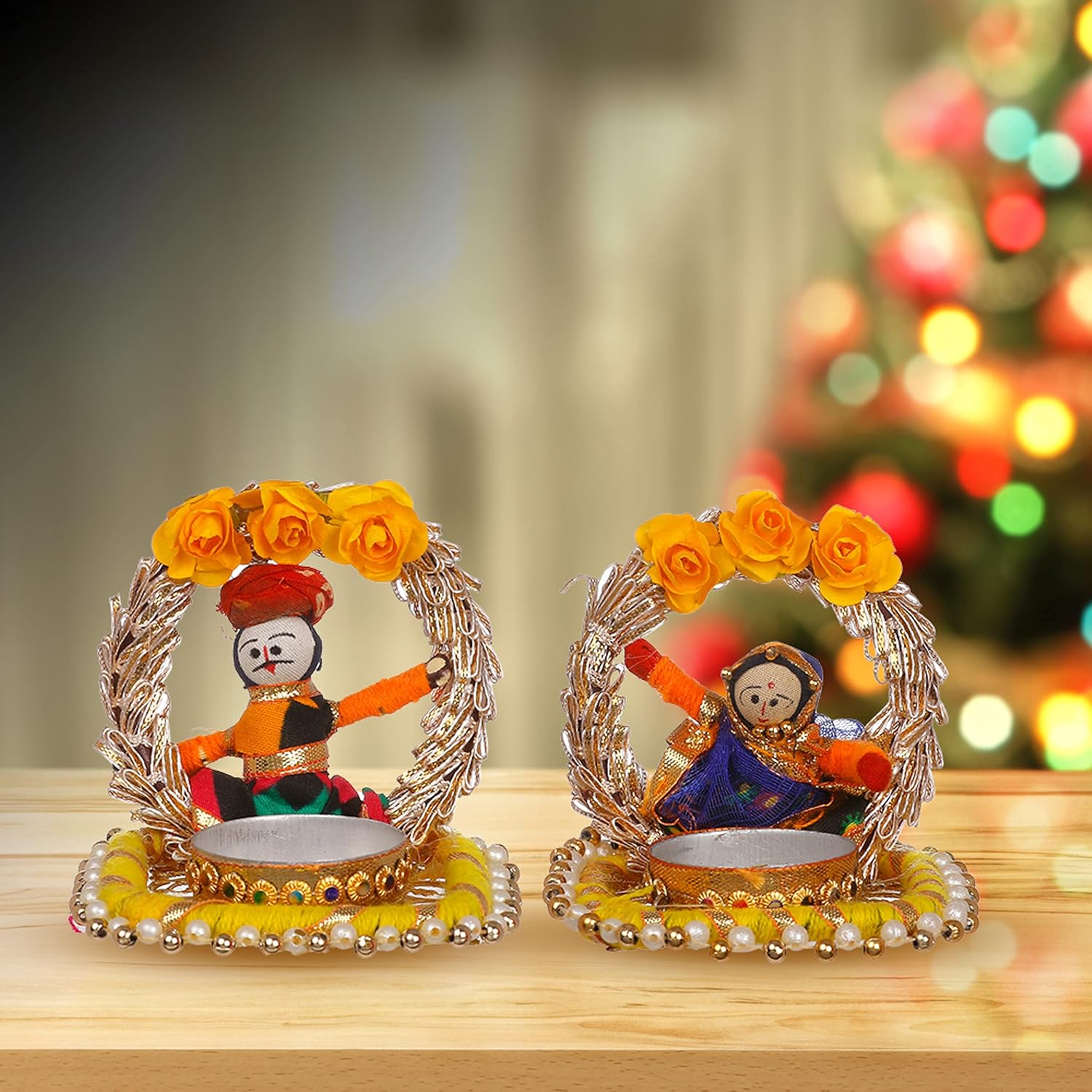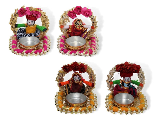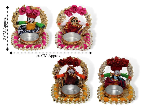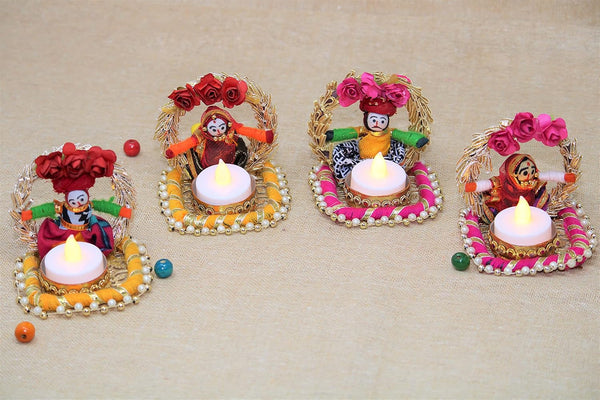 Recycled Material Rajasthani Raja Rani Puppet/Dolls Decorative Jharokha Tealight Candle Holder