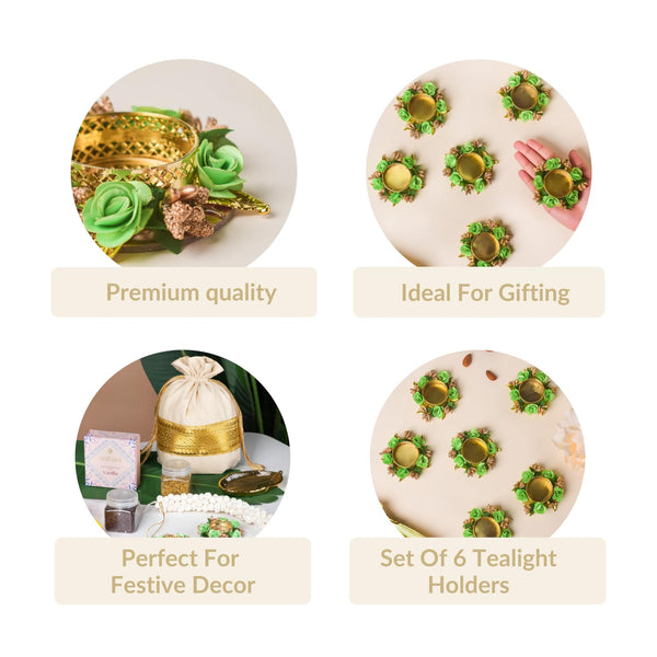 Rose Tea Light Holder Set of 6, Diwali Decoration Items for Home Decor