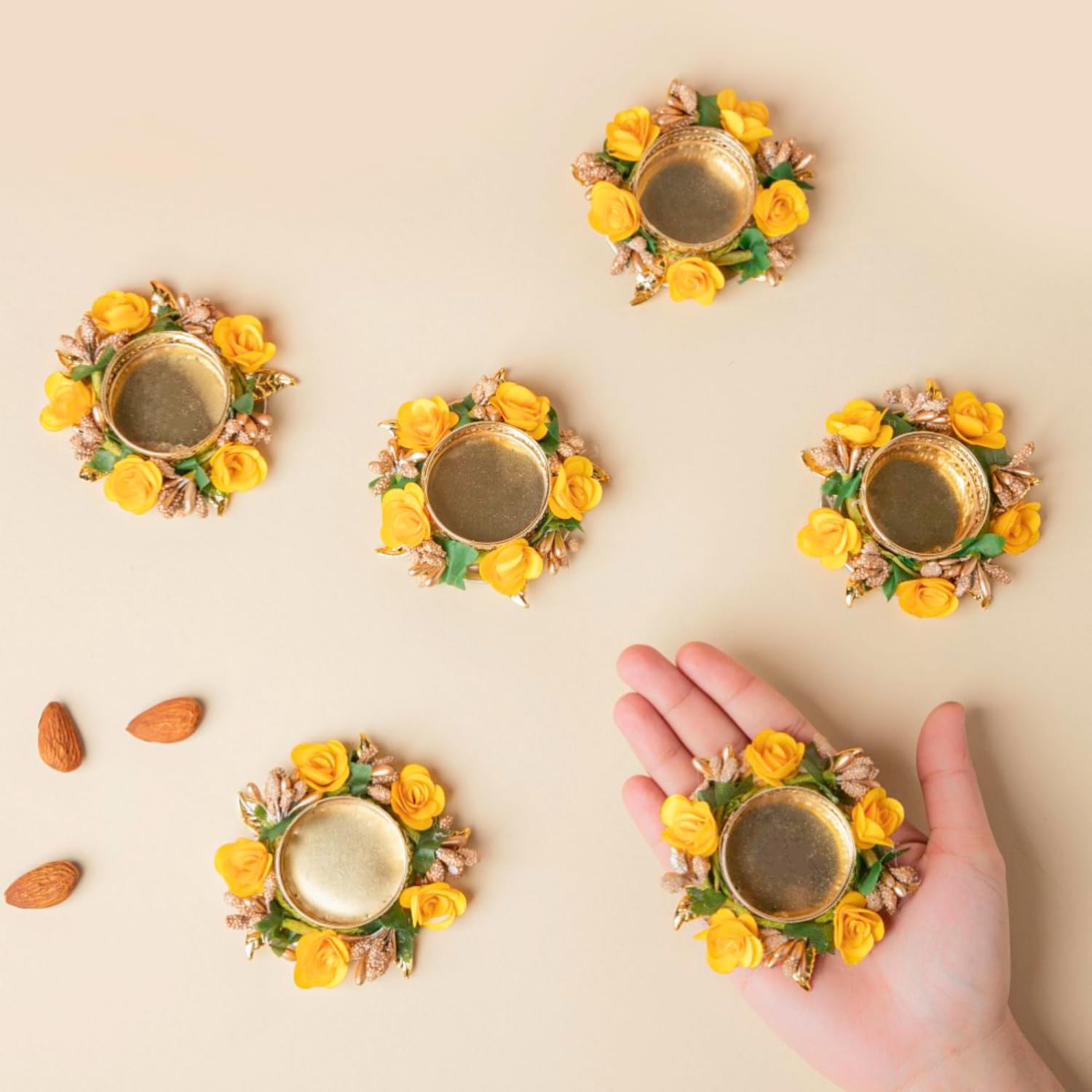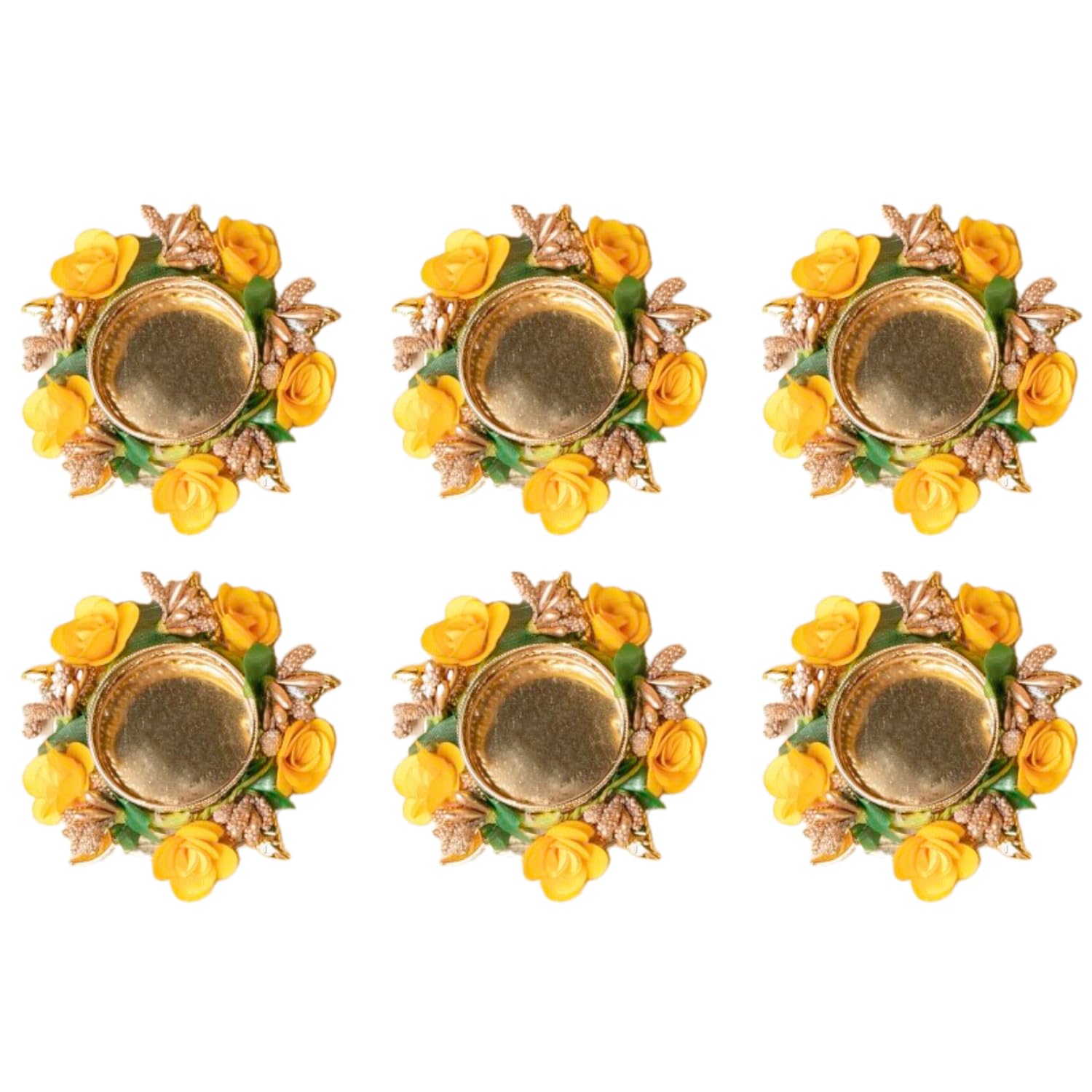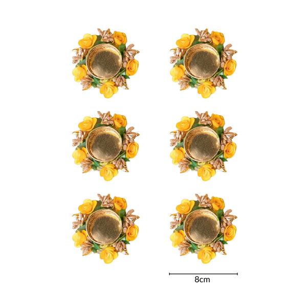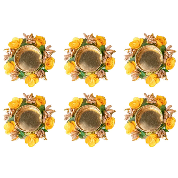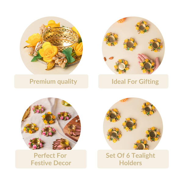 Rose Gold Tea Light Holder Set of 6, Diwali Decoration Items for Home Decor
