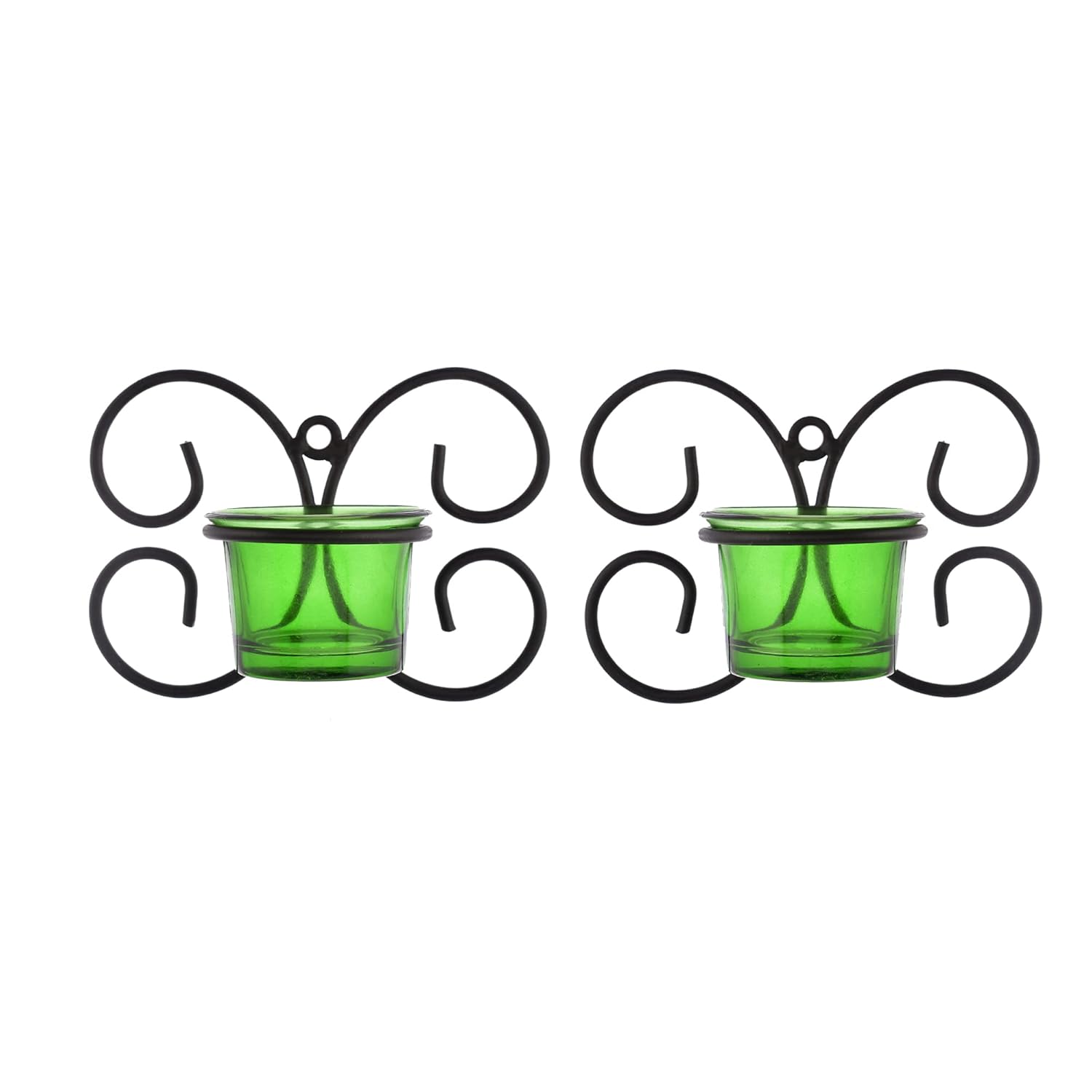 Set of 1 Wall Hanging Tealight Candle Holder Metal Wall Sconce with Glass Cups - Decorations Items for Home Wall Decor - Butterfly Green