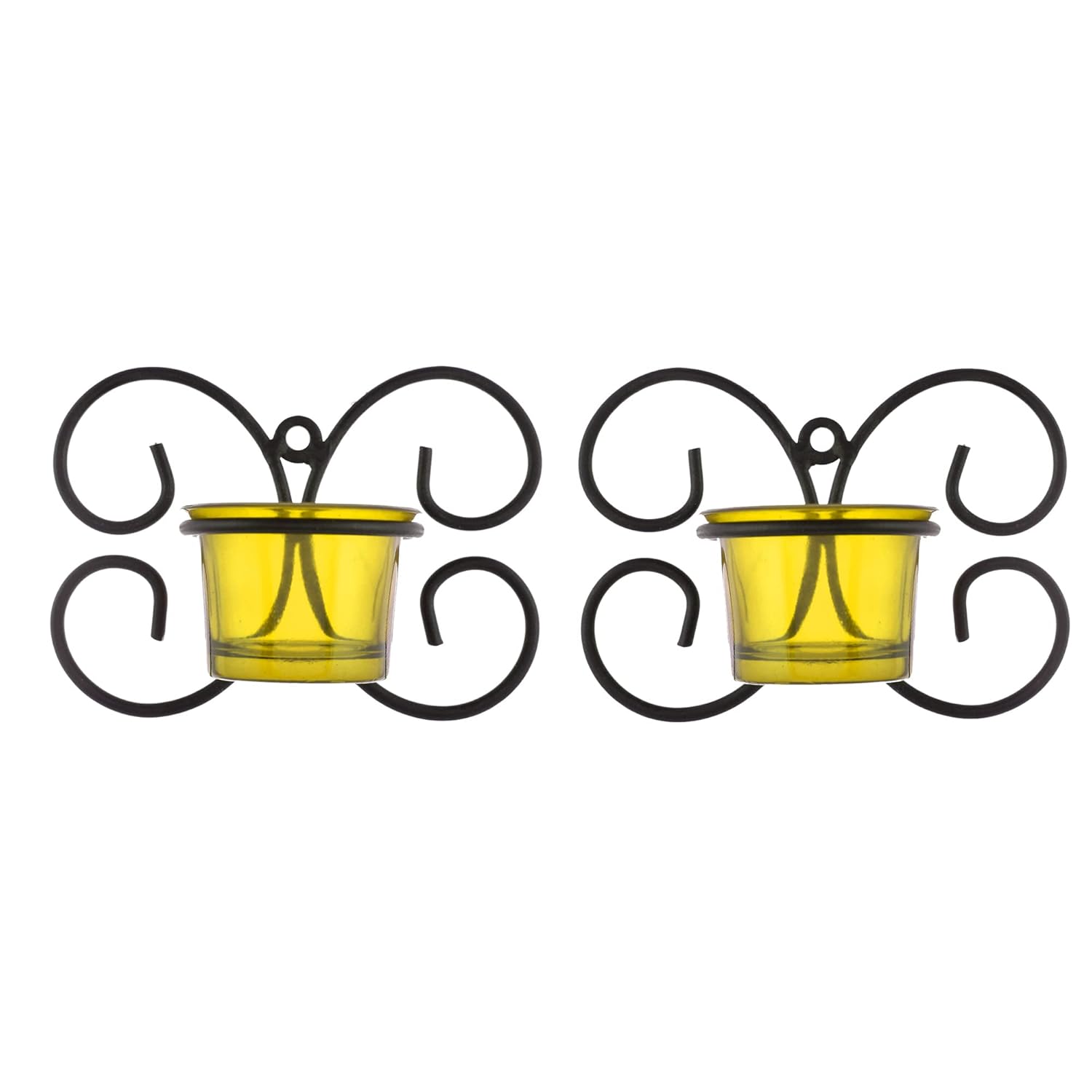 Set of 1 Wall Hanging Tealight Candle Holder Metal Wall Sconce with Glass Cups - Decorations Items for Home Wall Decor - Butterfly Yellow