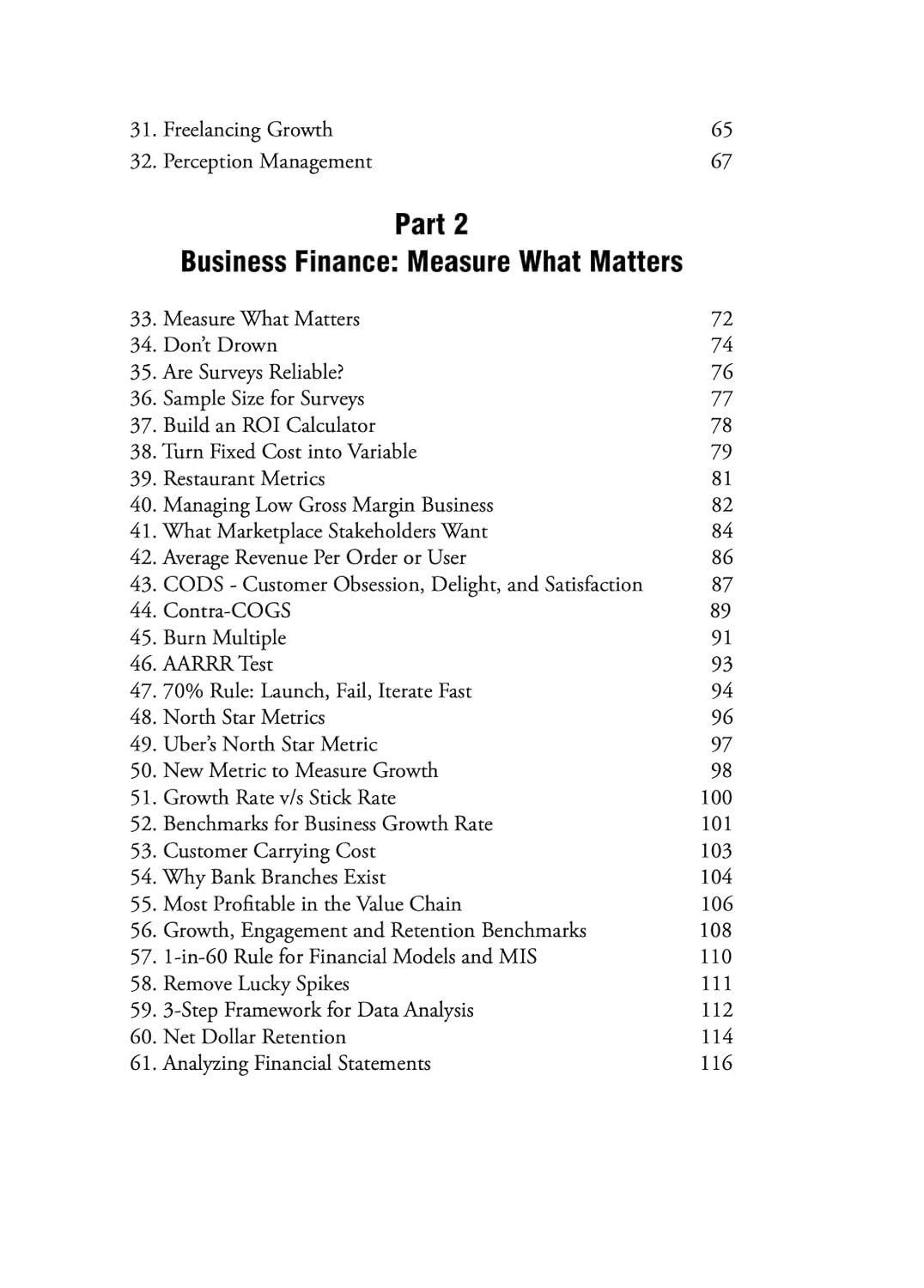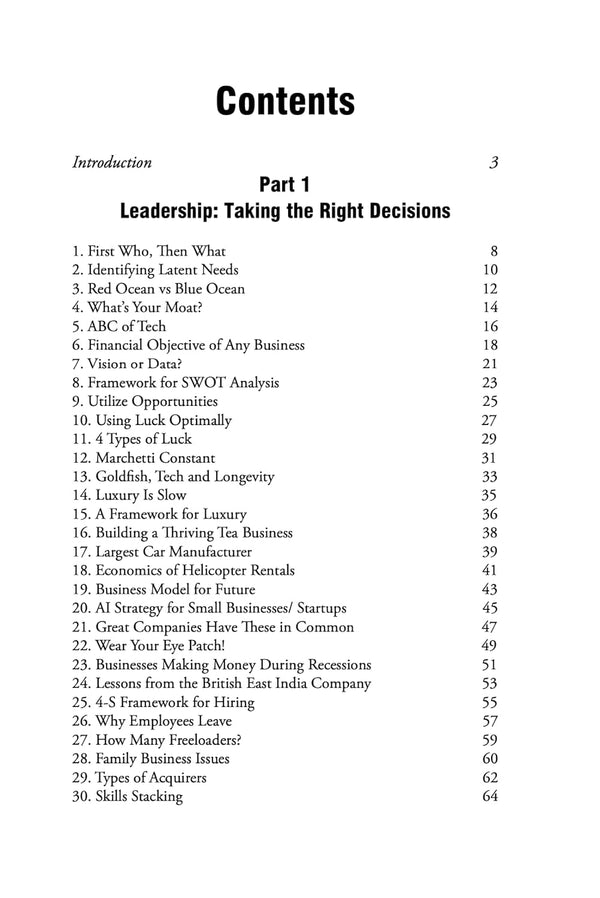 Actionable Insights Across Key Areas: Dive deep into leadership, business finance, marketing, pricing, and startup essentials. Each chapter provides practical takeaways you can implement immediately.