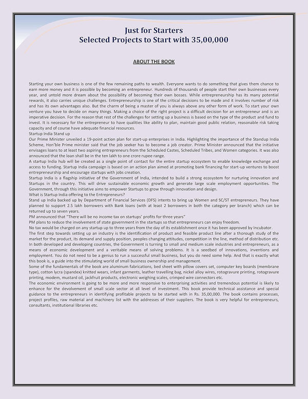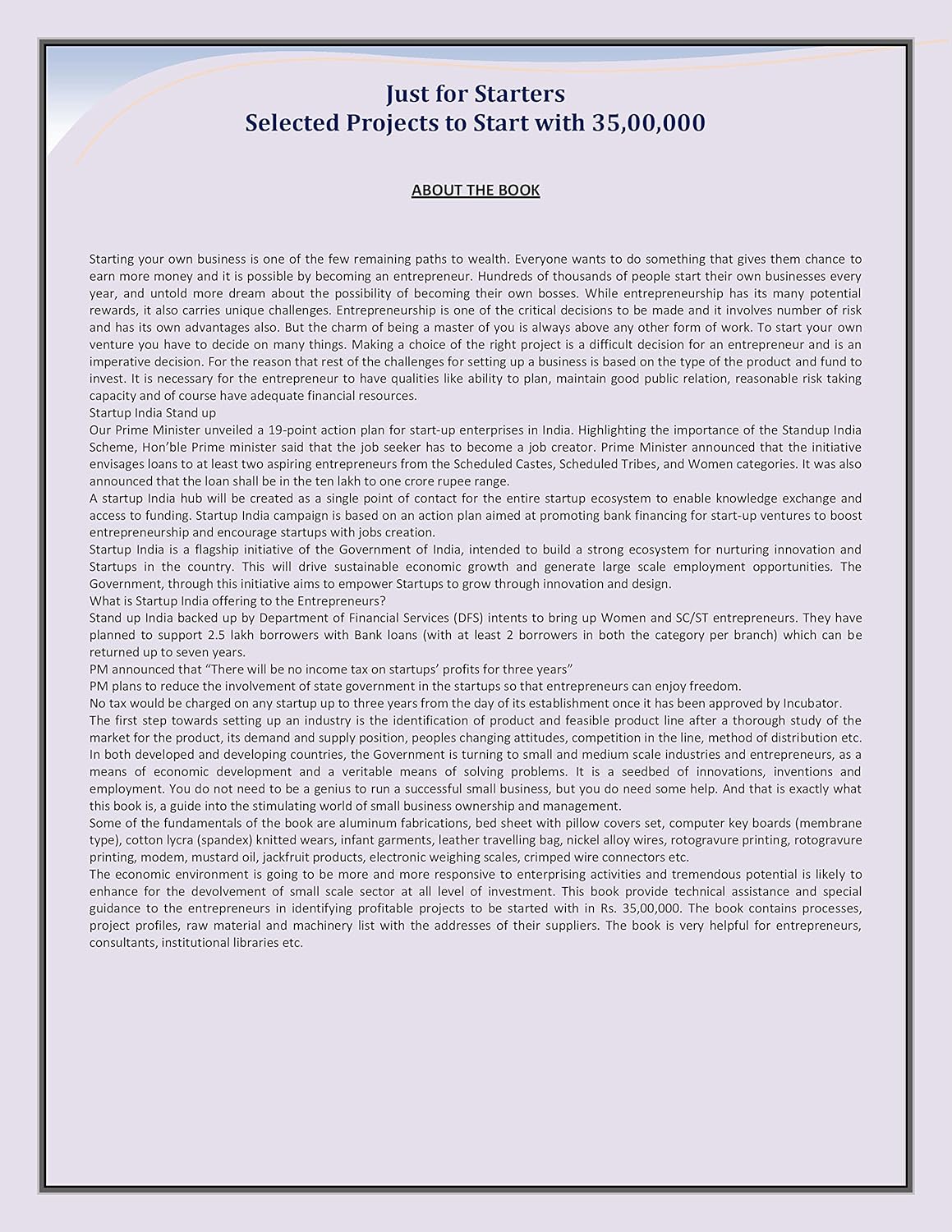 Are you ready to ditch the 9-to-5 and be your own boss? This comprehensive guide, Just for Starters: Selected Projects to Start with 35,00,000 by the NIIR Board of Consultants & Engineers, empowers aspiring entrepreneurs with everything they need to turn their business dreams into reality.