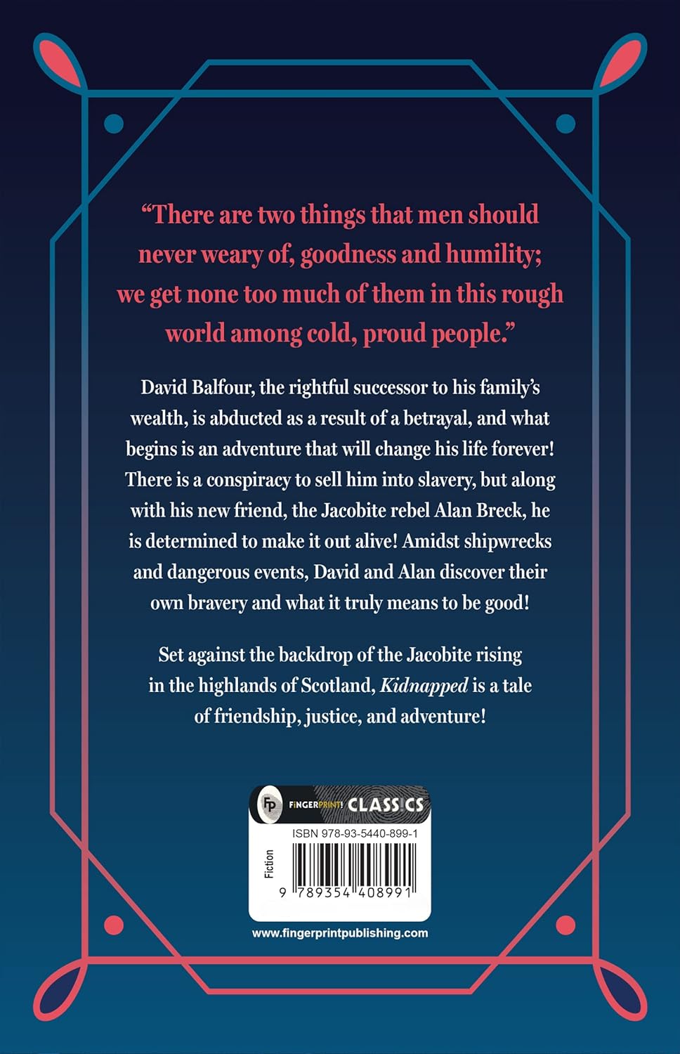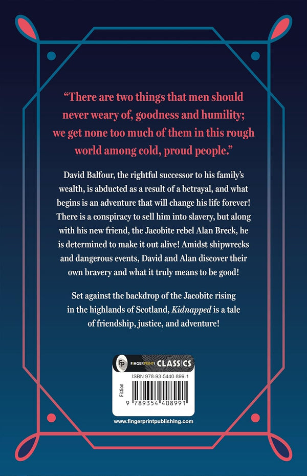 In Robert Louis Stevenson's captivating historical adventure novel, Kidnapped, young David Balfour is thrust into a thrilling odyssey of betrayal, survival, and self-discovery. Wrongfully abducted by his conniving uncle, David finds himself on a perilous journey across the Scottish Highlands and the high seas. What begins as a desperate struggle for freedom evolves into a test of character, forging courage and resilience in the face of danger.