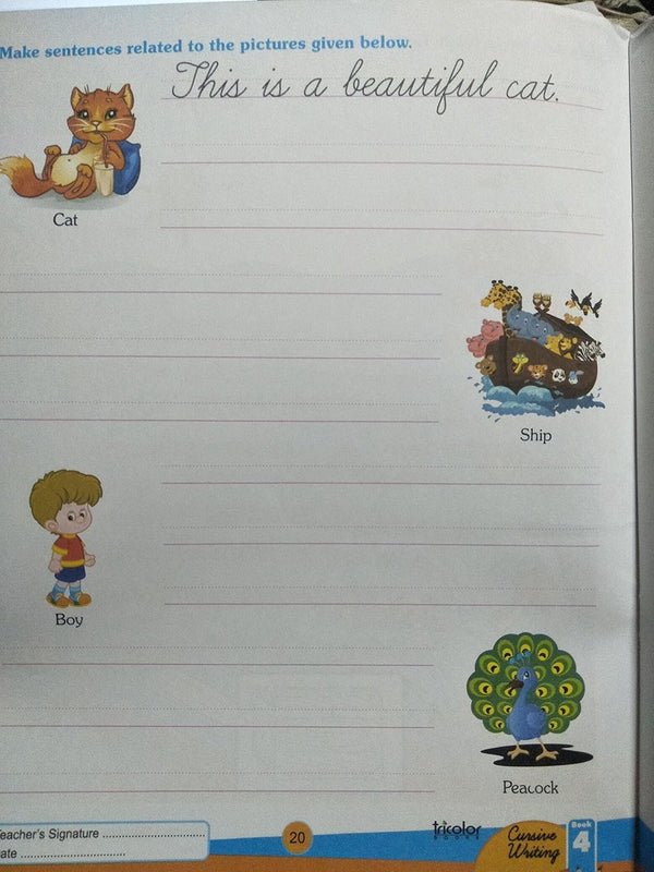 Cursive Writing 4: Sentences is the next step in your child's handwriting journey. Building upon their cursive letter formation skills, this workbook focuses on constructing complete sentences. With engaging exercises and clear examples, children will learn to connect words smoothly and confidently.