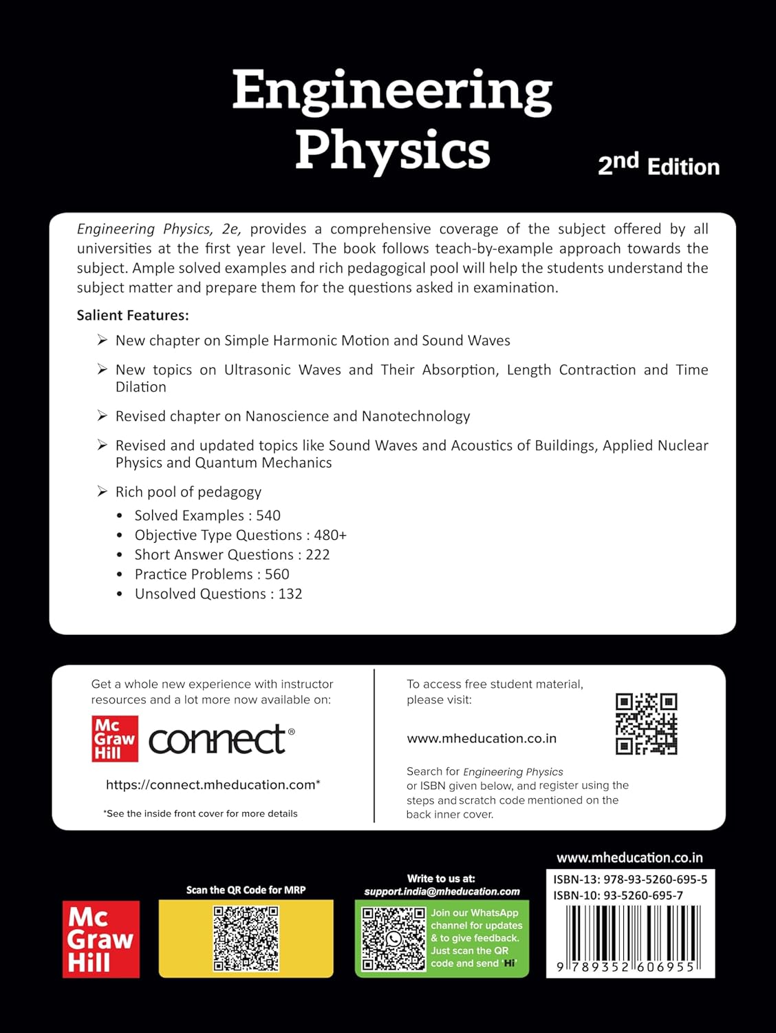 Engineering Physics, 2e, provides a comprehensive overview of the subject for first year engineering students. It provides an excellent coverage of the syllabus for all major universities. The book emphasizeson tutorial approach (teach-by-example) towards the subject. Ample solved examples and rich pedagogical pool will help the students understand the subject matter and prepare them for the questions asked inexamination.