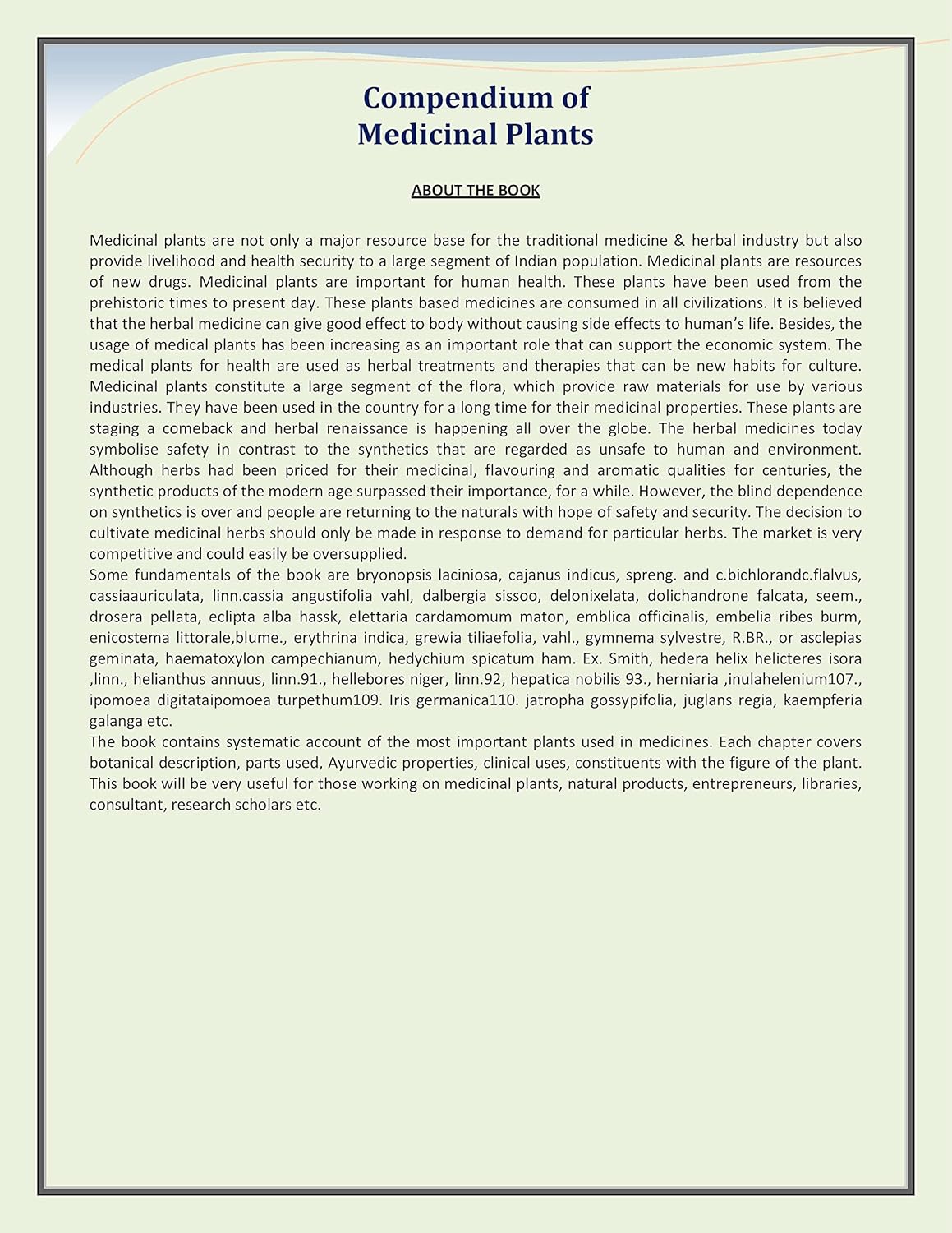 Compendium of Medicinal Plants delves into the fascinating world of botanical medicine, offering a rich resource for anyone interested in natural health remedies, traditional healing practices, or the science behind herbal cures.