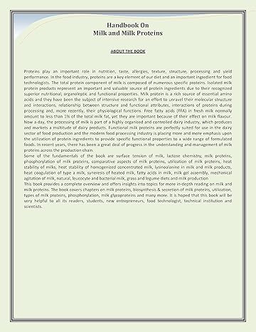 "MILK AND MILK PROTEINS" provides a one-stop resource for anyone seeking to understand the complexities and functionalities of milk protein. From its role in human nutrition to its impact on food processing, this book offers a wealth of knowledge for those seeking to unlock the full potential of this essential dairy component.