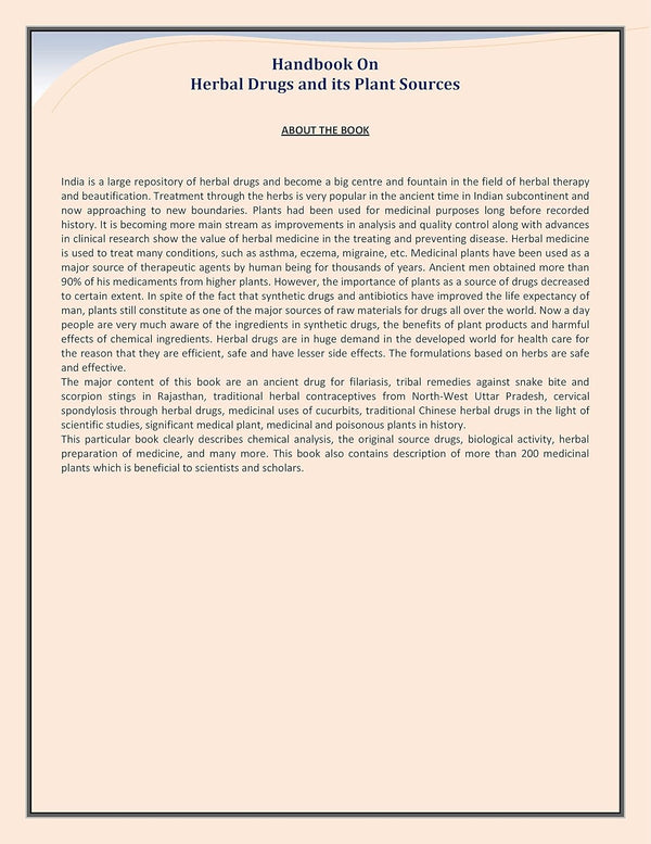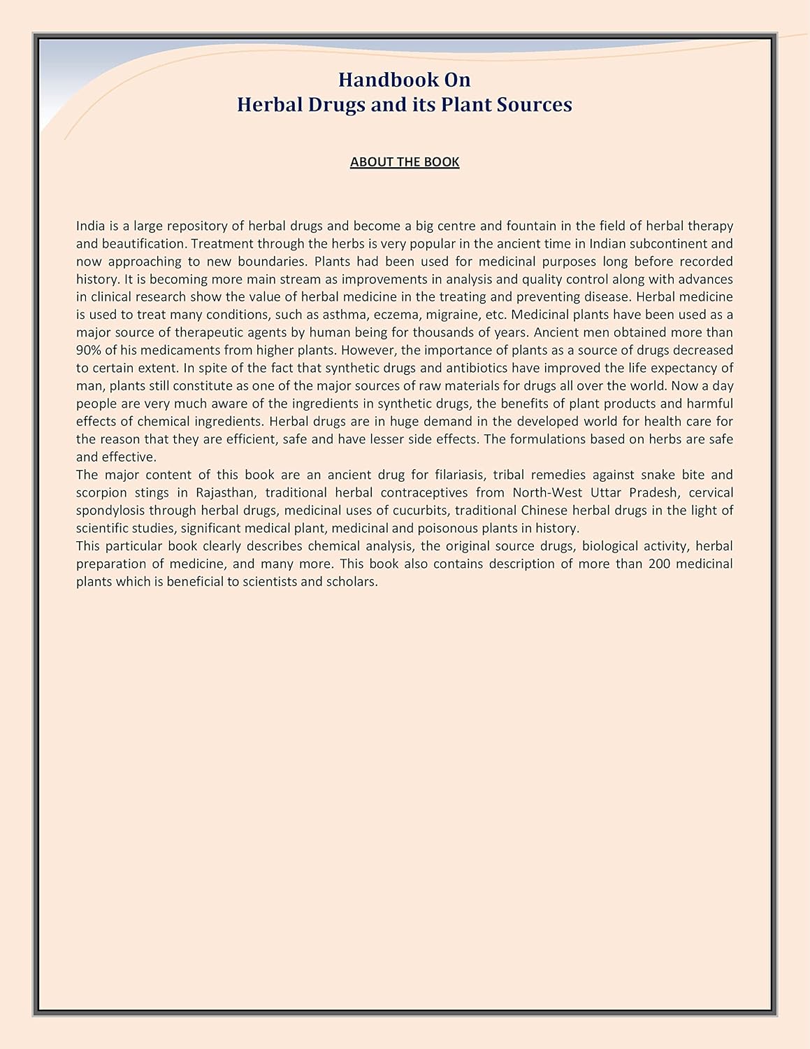 "Handbook on Herbal Drugs and Its Plant Sources" caters to a broad audience: