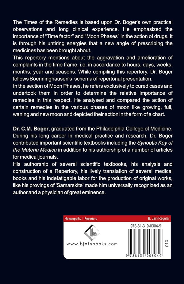 Dr. Boger, renowned for his clinical expertise, presents a novel approach to case analysis by emphasizing the importance of time factors in prescribing. By categorizing remedies based on their action during different hours, days, weeks, months, and seasons, this book provides a unique tool for homeopathic practitioners.