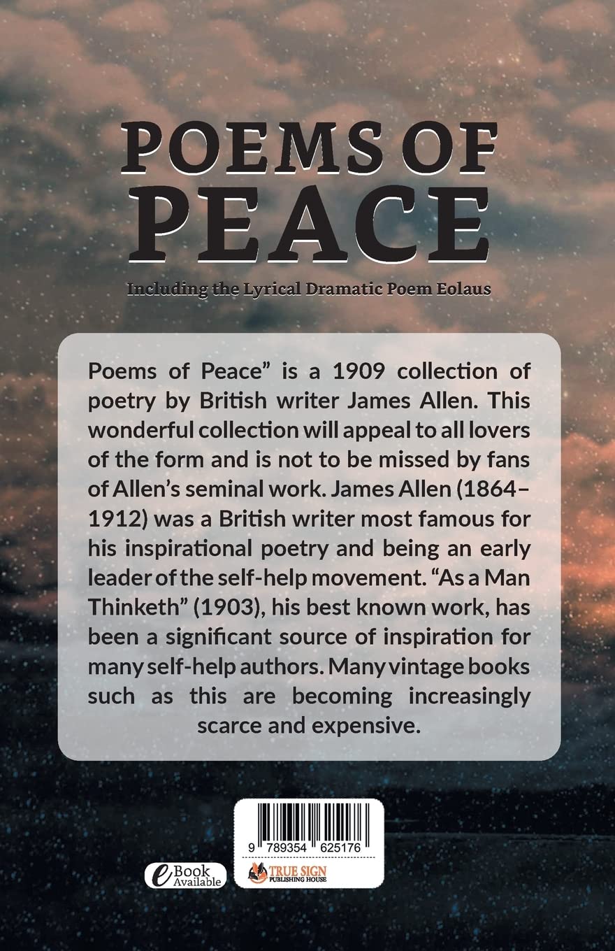 James Allen, a renowned poet and pioneer of the self-help movement, is best known for his inspirational work, "As a Man Thinketh."  "Poems of Peace" carries on that tradition, weaving together profound themes with beautiful language.  These poems delve into finding peace amidst life's challenges, and serve as a gentle guide on the path to inner harmony.