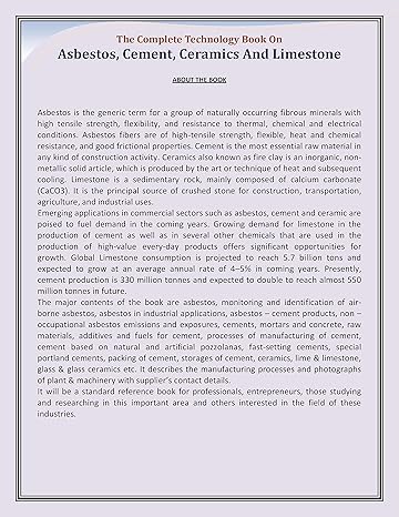 "Asbestos, Cement, Ceramics and Limestone" by Dr. H. Panda provides a valuable reference for anyone seeking to understand the science and applications of these fundamental building materials. Embrace the power of knowledge and navigate the world of construction with confidence!