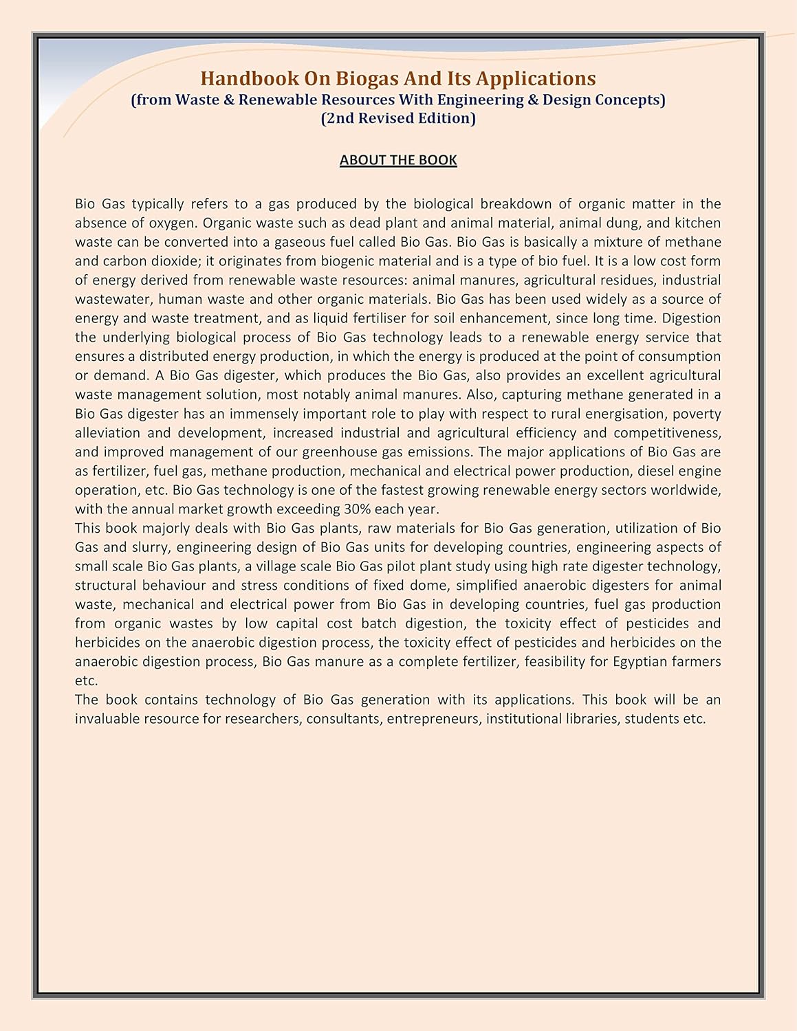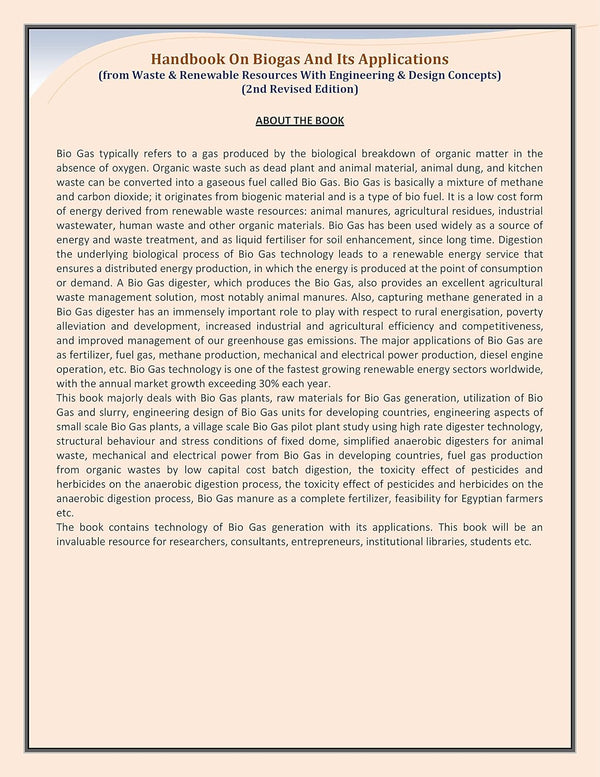 Handbook on Biogas and Its Applications (from Waste & Renewable Resources with Engineering & Design Concepts) offers a comprehensive exploration of biogas technology, empowering you to unlock the potential of this clean and sustainable energy source.