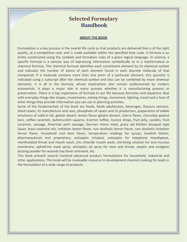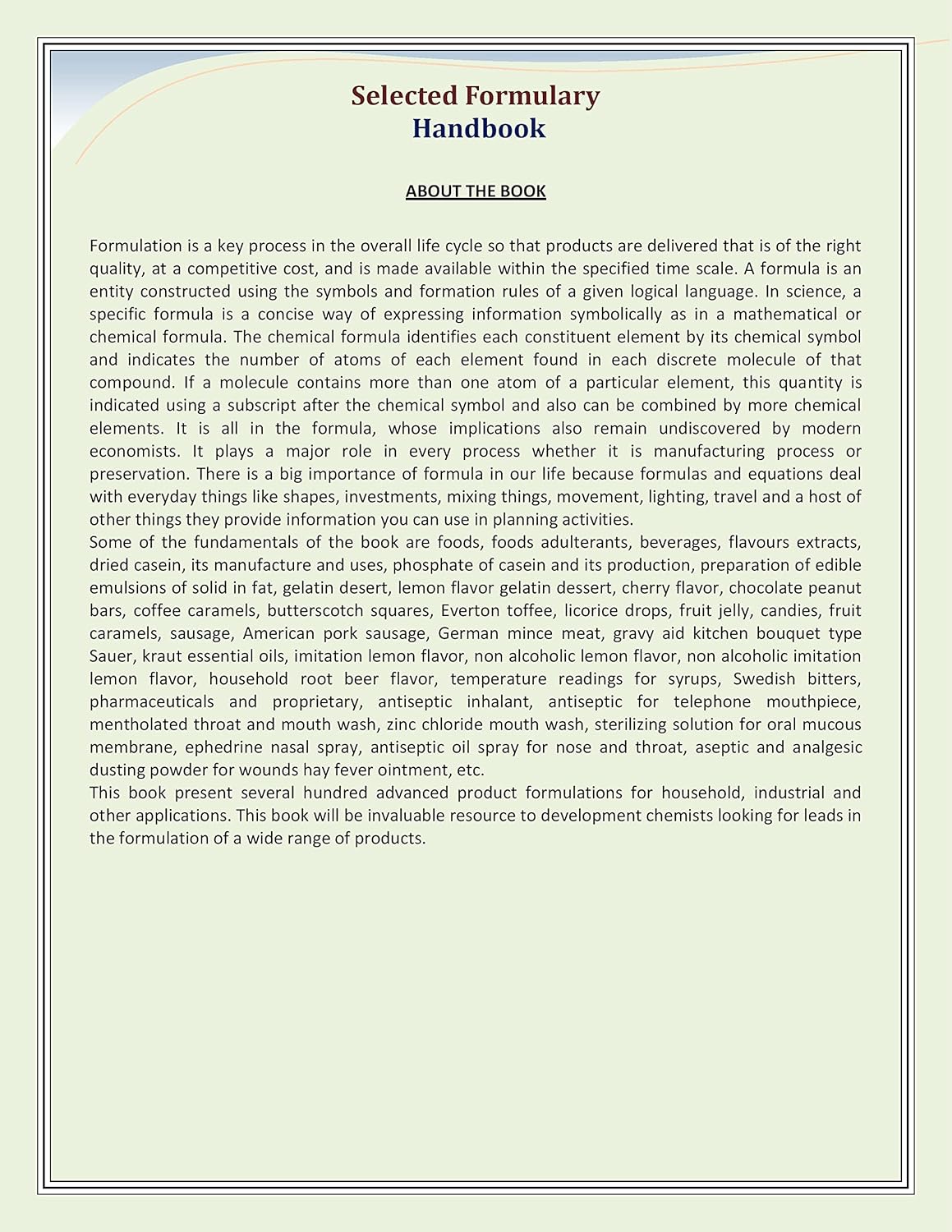 Selected Formulary Handbook by NPCS is an invaluable resource for anyone interested in mastering product formulation. It empowers you to create high-quality products across diverse industries, from food science to pharmaceuticals and household essentials. This book can be your secret weapon for bringing innovative and successful products to market.