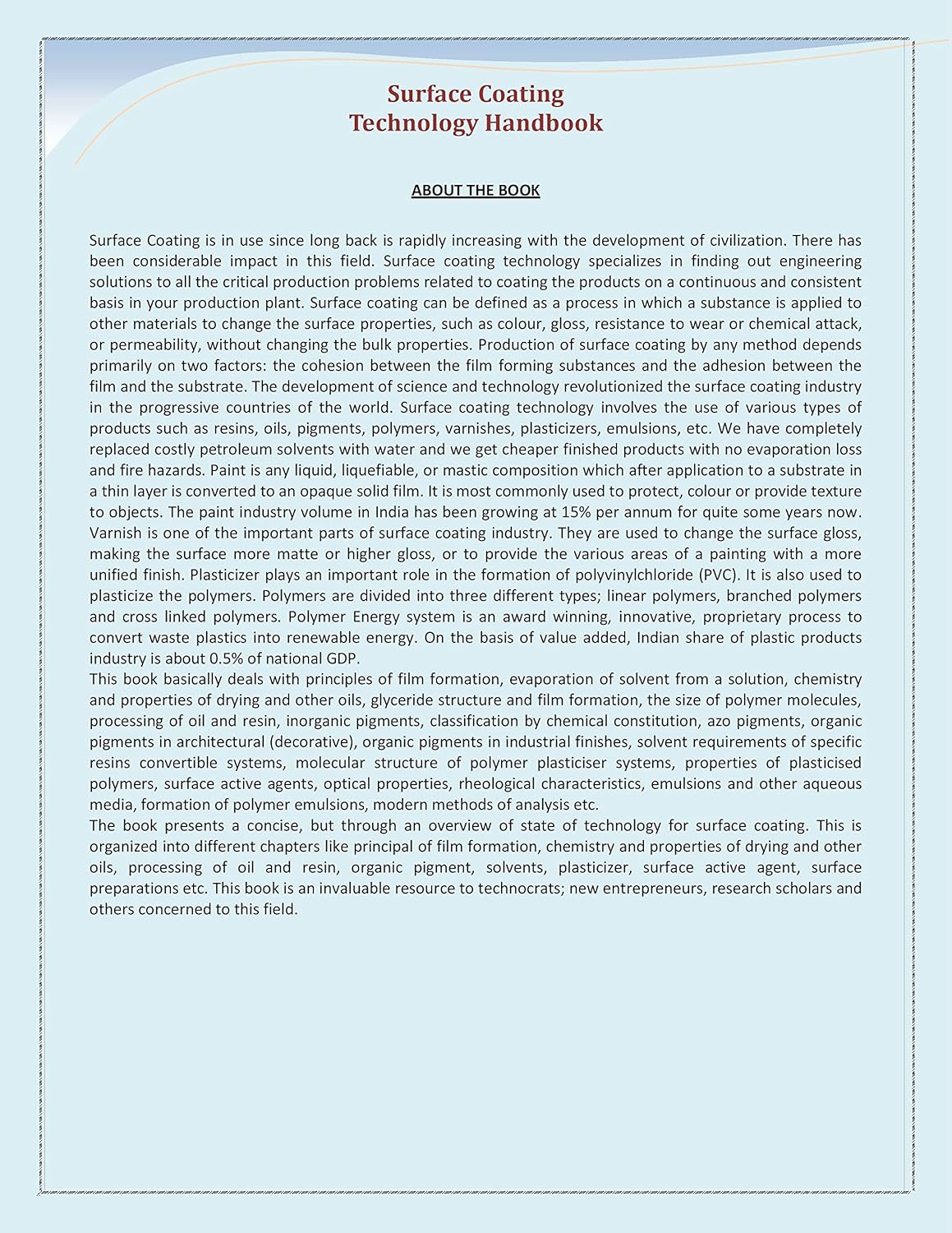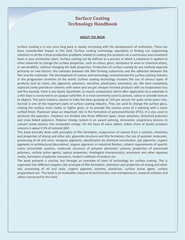 Whether you're a chemist, engineer, or a business owner in the coatings industry, this book provides valuable insights into the latest advancements in surface coating technology. Discover how to formulate coatings, optimize production processes, and ensure product quality.
