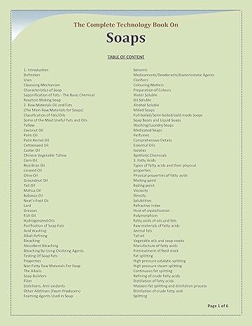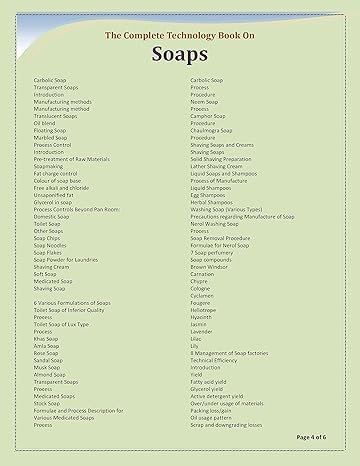 Packed with detailed explanations, informative illustrations, supplier contact details, and essential soap formulas, "The Complete Technology Book on Soaps" equips you with the knowledge and tools to create exceptional soaps. Whether you're a curious beginner or a seasoned professional, this book empowers you to navigate the exciting and ever-evolving world of soap making!