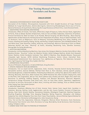 The Testing Manual of Paints, Varnishes and Resins is your comprehensive guide to ensuring exceptional quality control in the world of paints and coatings. This informative paperback equips you with the knowledge and expertise to conduct essential physical and chemical tests on paint samples, guaranteeing their performance and durability across diverse applications.