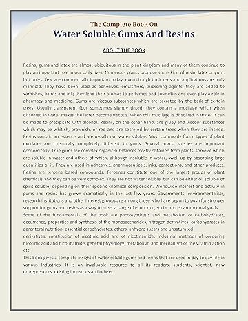 Delve into the fascinating world of water soluble gums and resins with "WATER SOLUBLE GUMS AND RESINS" by H. Panda. This comprehensive guide unlocks the secrets of these natural materials, revealing their diverse applications in our everyday lives.