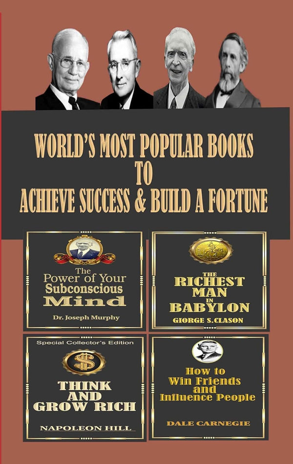 "World’s Most Popular Books to Achieve Success and Build a Fortune (Set of 4 Books)" by Dale Carnegie, Napoleon Hill, and George S. Clason, presented in hardcover format, offers a curated collection aimed at personal and financial success. Here's a detailed description of what this set might include: