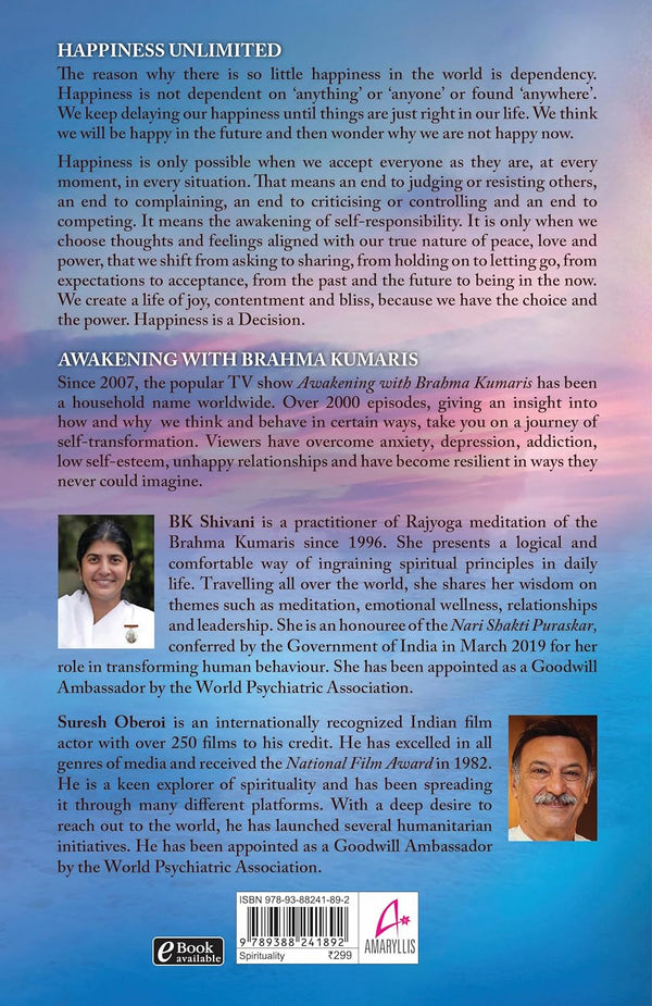 Embrace the power to create your own happiness. Order your copy of Happiness Unlimited by BK Shivani [Paperback] today and embark on a journey of lasting joy!