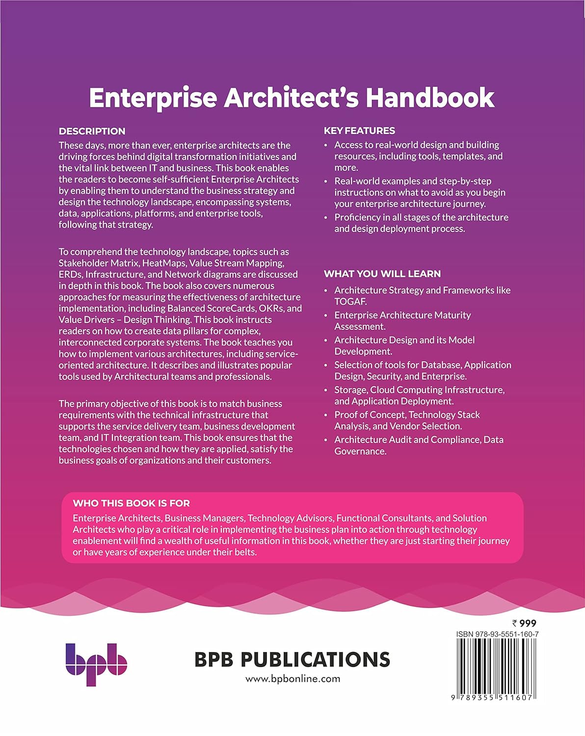 "Enterprise Architect’s Handbook" is tailored for IT professionals, enterprise architects, CIOs, and senior managers seeking to establish robust IT frameworks that support organizational growth and competitive advantage.