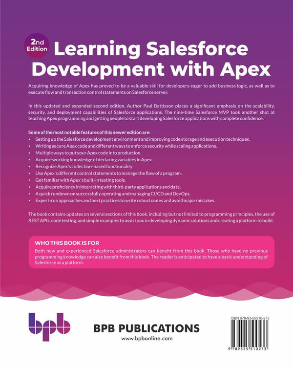 This book is ideal for developers, administrators, and students who want to dive into Salesforce development and learn how to leverage Apex to customize and extend Salesforce applications. Whether you are new to Salesforce or looking to enhance your skills in Apex programming, this resource serves as a valuable reference and learning tool.