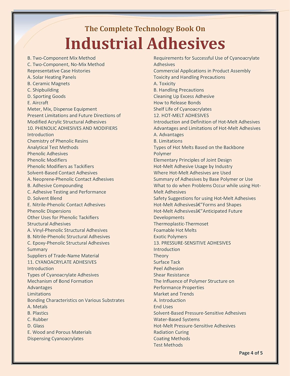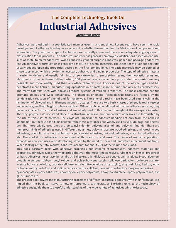 The Complete Technology Book on Industrial Adhesives by NPCS Board of Consultants & Engineers is your gateway to a world of secure and reliable bonding solutions. Become an adhesive expert and unlock a vast array of possibilities in various industrial and personal applications.