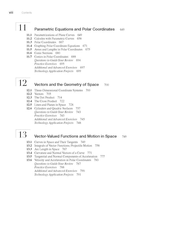 Parametric Equations, Polar Coordinates, and Multivariable Calculus: Explore advanced topics like parametric equations, polar coordinates, vectors, vector-valued functions, motion in space, partial derivatives, multiple integrals, and vector fields.