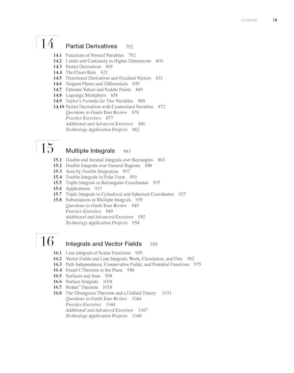 "Thomas' Calculus, Fourteenth Edition" covers a vast array of topics, meticulously structured for a logical learning progression: