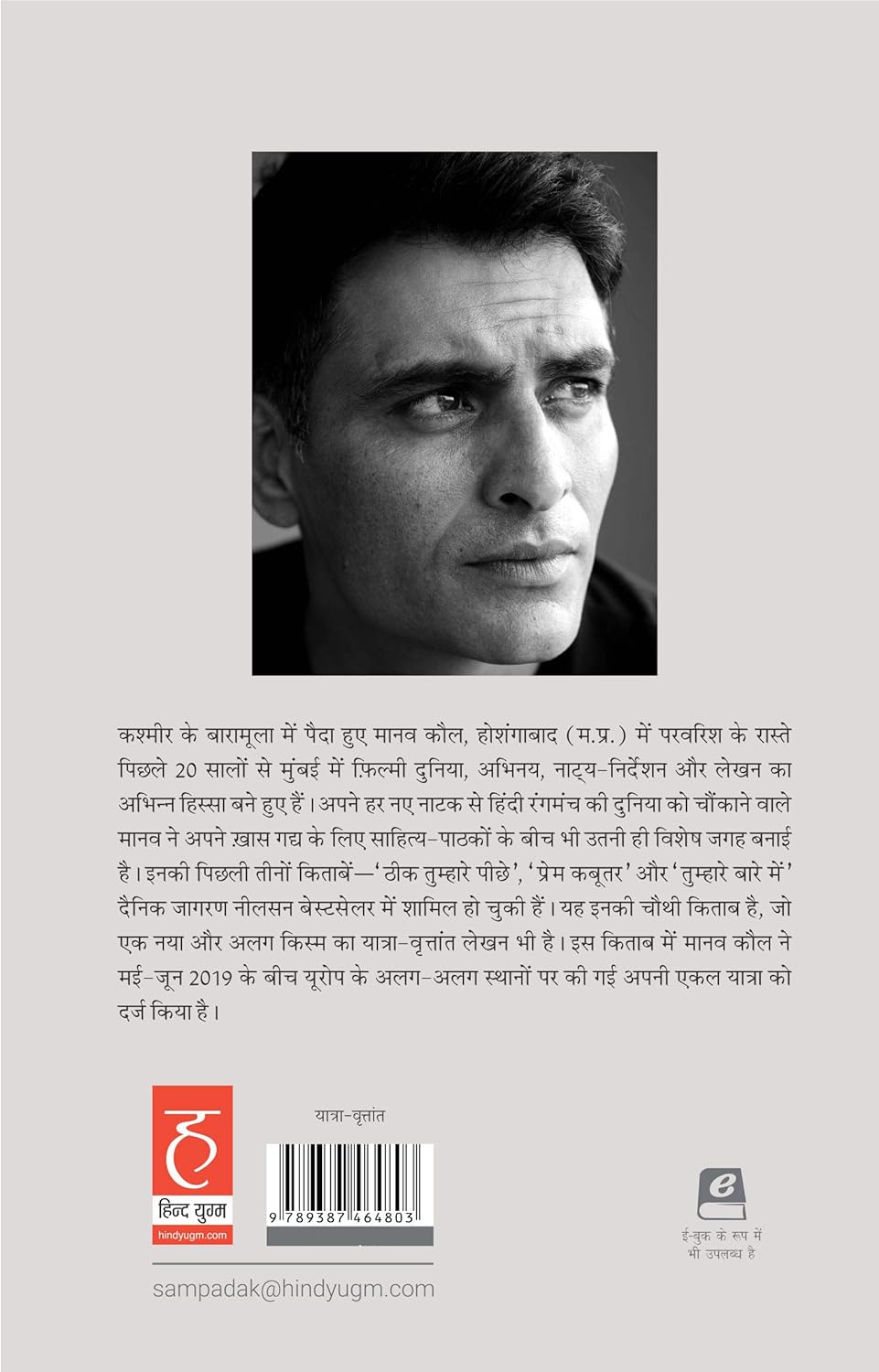 एक संवाद लगातार बना रहता है अकेली यात्राओं में। मैंने हमेशा उन संवादों के पहले का या बाद का लिखा था... आज तक। ठीक उन संवादों को दर्ज करना हमेशा रह जाता था। इस बार जब यूरोप की लंबी यात्रा पर था तो सोचा, वो सारा कुछ दर्ज करूँगा जो असल में एक यात्री अपनी यात्रा में जीता है। जानकारी जैसा कुछ भी नहीं... कुछ अनुभव जैसा.. पर ठीक अनुभव भी नहीं। अपनी यात्रा पर बने रहने की एक काल्पनिक दुनिया। मानो आप पानी पर बने अपने प्रतिबिंब को देखकर ख़ुद के बारे में लिख रहे हों। वो ठीक मैं नहीं हूँ... उस प्रतिबिंब में पानी का बदलना, उसका खारा-मीठा होना, रंग, हवा, सघन, तरल, ख़ालीपन सब कुछ शामिल हैं। इस यात्रा-वृत्तांत को लिखने के बाद पता चला कि असल में मैं इस पूरी यात्रा में एक पहेली की तलाश में था... जिसका जवाब यह किताब है। —मानव कौल