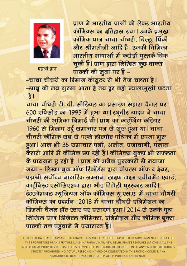 known for creating the iconic Indian comic book character 'Chacha Chaudhary'. A middle-aged man with a red turban and white moustache is known for his wit, intelligence and problem-solving ability. Soon it became famous in every household. Seeing the popularity of 'Chacha Chaudhary', it was published in many Indian languages.