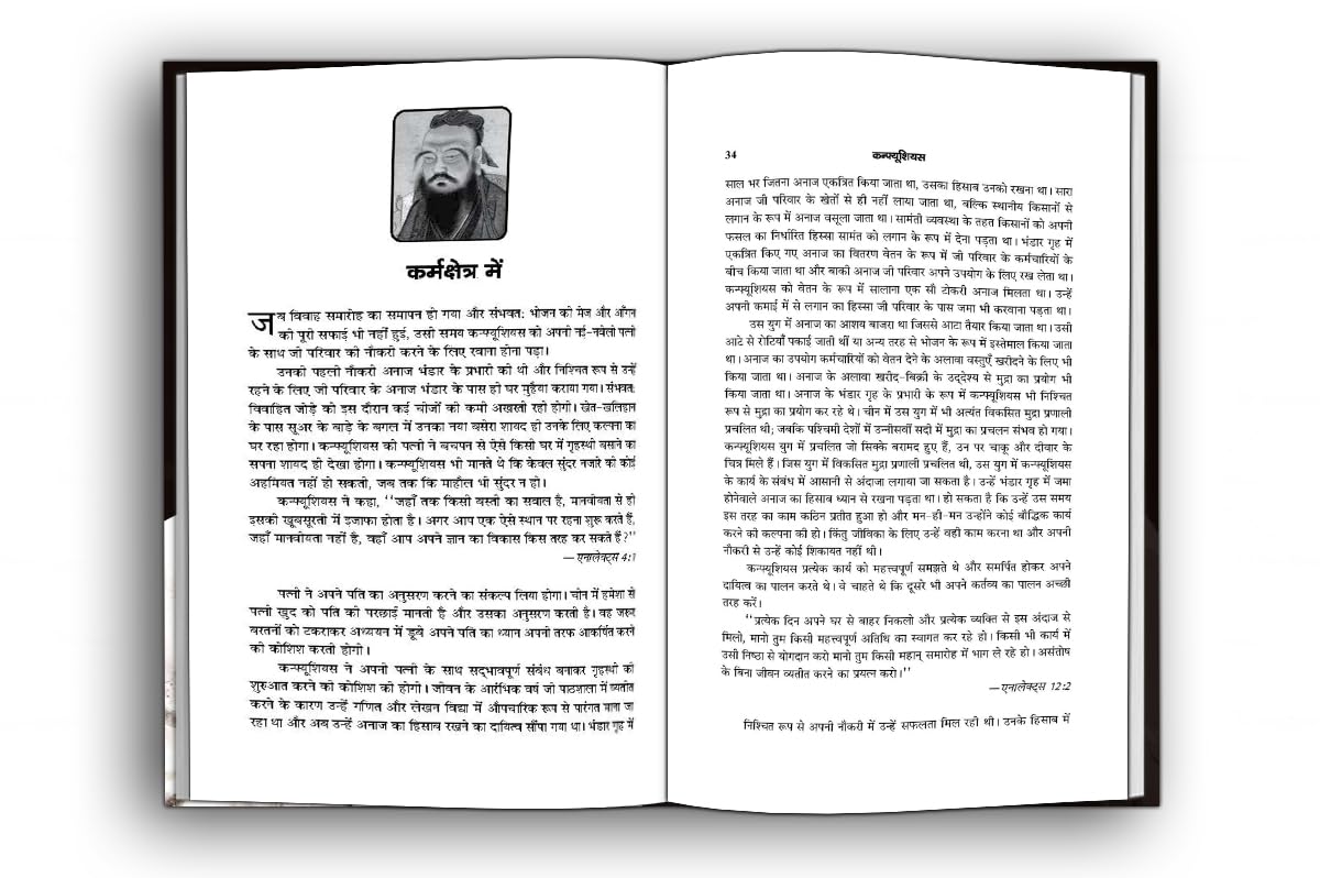 कन्फ्यूशियस का जीवन और कार्य: पुस्तक में कन्फ्यूशियस के जन्म, शिक्षा, सामाजिक कार्यों और राजनीतिक जीवन का विस्तृत वर्णन है।