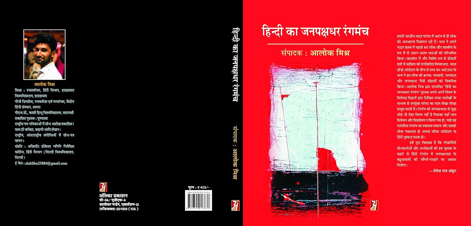 The concept of Lok has existed in our Indian theatre tradition from the very beginning. Bharata defined two different streams as Lok and classical for the first time in his Natya Shastra. Later, and especially in the twentieth century, the progressive ideology of literature, the birth of IPTA that emerged from the midst of the Quit India Movement, developed terms like Janvadi, Jan Natya and Jan Pakshadhar for this Lok. The book 'Hindi Ka Jan Pakshadhar Rangmanch' edited by Alok Mishra presents a detailed account of the above tradition through seventeen articles written by experts of their respective subjects. There is no such topic related to the public interest of theatre that has not been discussed and analyzed deeply here, whether it is the autonomous form of traditional theatre and its public interest or the Dalit movement or Hindi street plays. We are confident that theatre workers, researchers and scholars will get an opportunity to examine the multi-dimensionality of public interest in Hindi theatre through this book. —Devendra Raj Ankur
