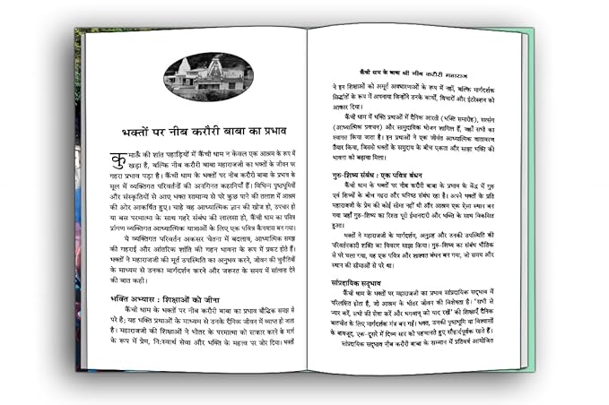 हिमालय की गोद में बसा कैंची धाम एक मरुघान के रूप में उभरा, जहाँ विविध पृष्ठभूमि के साधक आध्यात्मिक पोषण की खोज में एकत्र हुए। यहाँ के मनोरम वातावरण में एक अलग ही प्रकार की अप्रतिम अनुभूति होती है और किसी दिव्य आध्यात्मिक चेतना से हर भक्त अपने कष्ट भूलकर बाबा की प्रत्यक्ष उपस्थिति अनुभव कर पाता है। यह पुस्तक आश्रम का एक मनोरम दृश्य प्रस्तुत करती है।