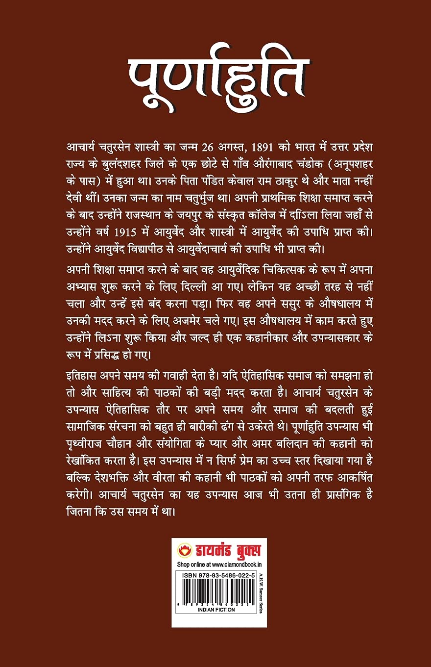 "Poornahuti" by Acharya Chatursen. Order your copy in Hindi today and embark on an unforgettable literary adventure!