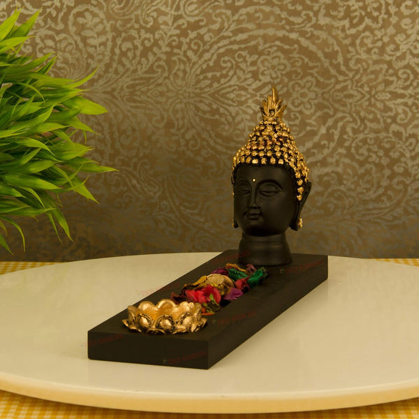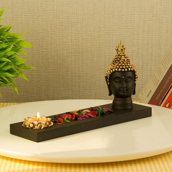 Lord Buddha Head Showpiece Tealight Candle Holder with Tray Set for Home Decor Mandir Temple Pooja Room