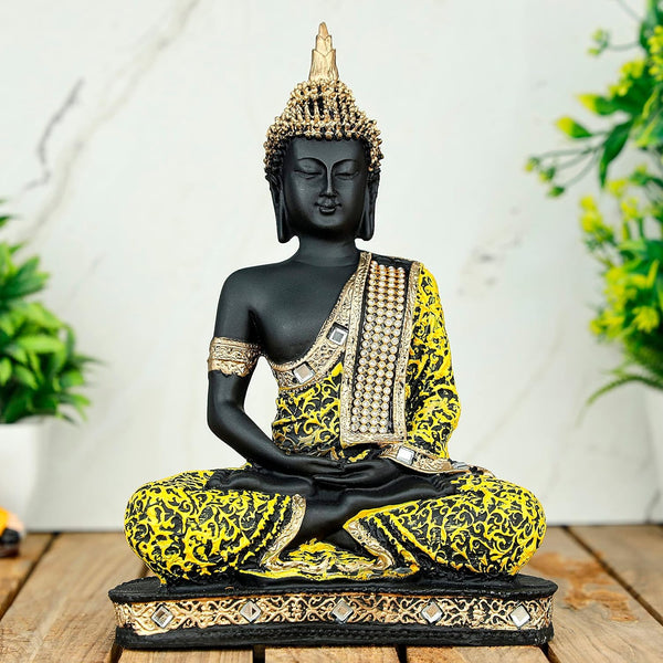 Polyresin Sitting Buddha Idol Statue | Home Decor Showpiece | Decoration & Gift - Yellow