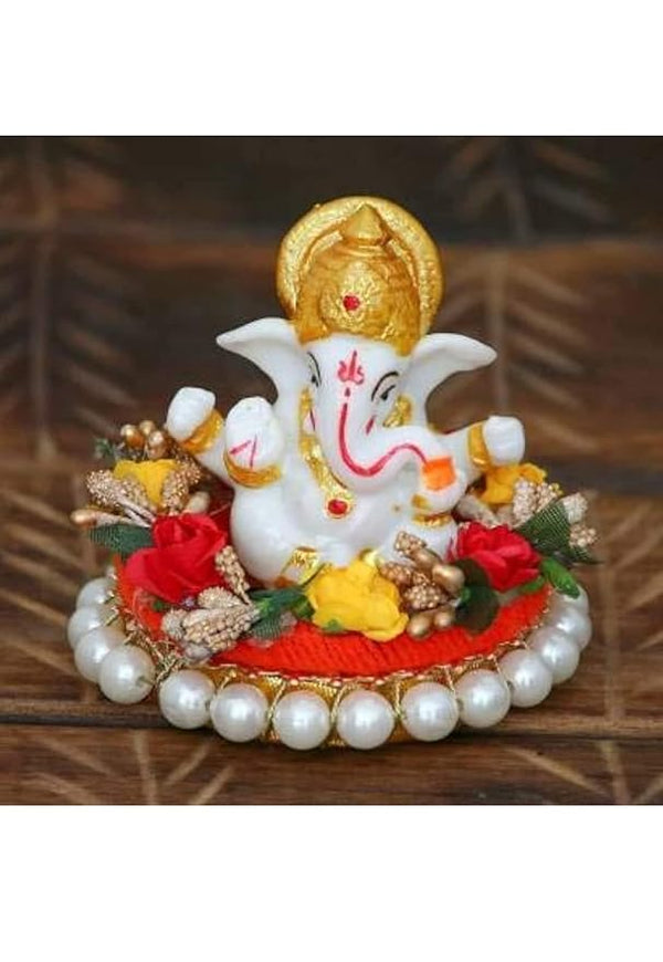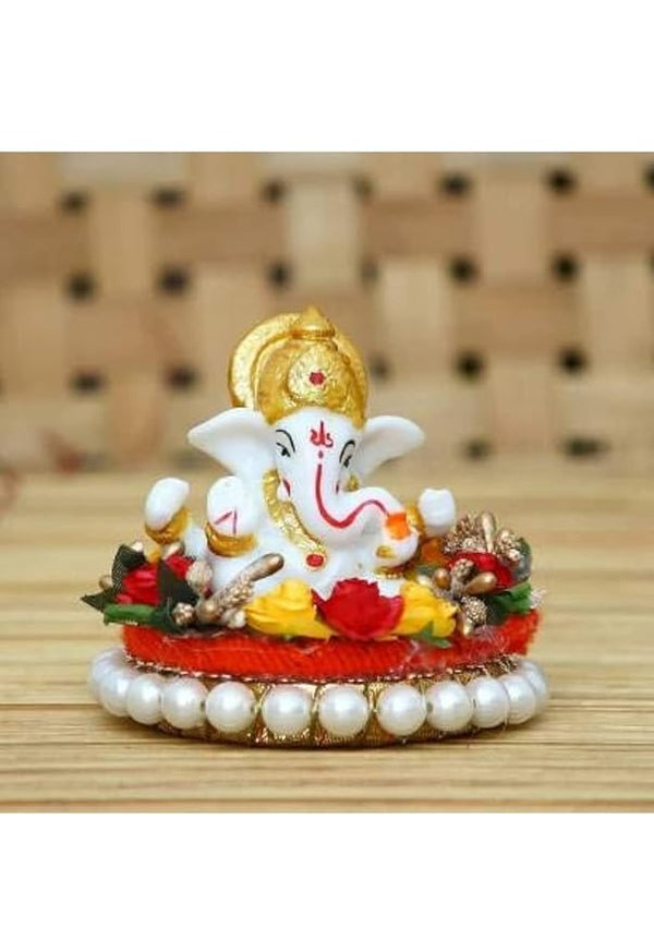 Hindu Gods : Ganesha Lord Ganesha Idol Sitting On Gungroo Bangles Plate For Car Dashboard & Home Decor