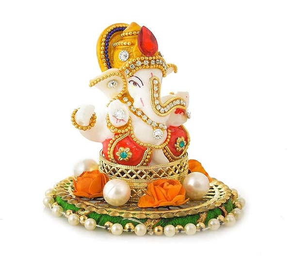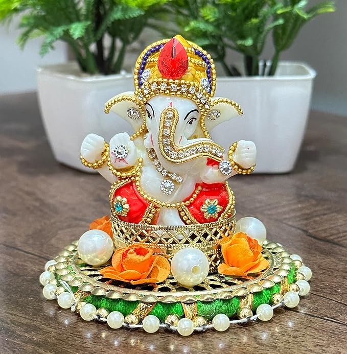 Transform your space with our beautifully handcrafted Ganesha idol, designed to bring blessings of wisdom and prosperity into your life. Made from high-quality resin, this charming idol is perfect for your altar, as an eye-catching showpiece in your home, or a delightful addition to your car dashboard.
