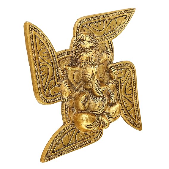 Hindu Gods : Ganesha Metal Lord Ganesha on Swastik Idol for Door Hanging, Article Wall Hanging and Home Decor