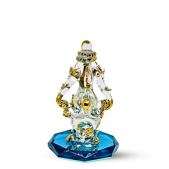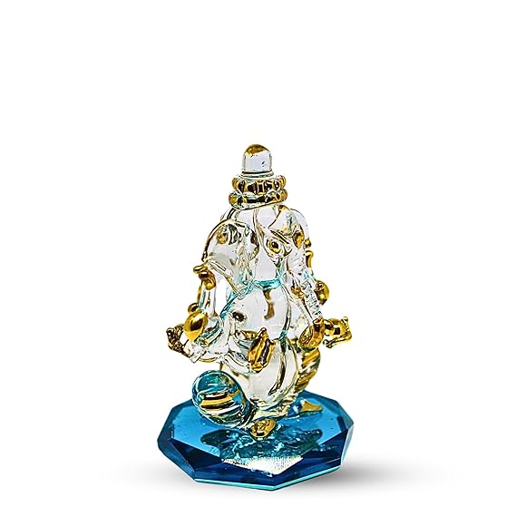 Transform your surroundings with this exquisite handmade Ganesha statue, crafted from premium glass. This stunning showpiece is ideal for your home, altar, or car dashboard, radiating positive energy and spiritual significance wherever it is displayed.