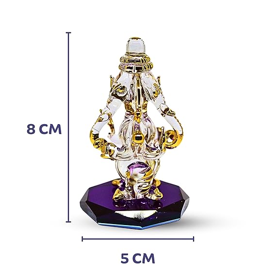 Enhance your spiritual environment with this exquisite handmade Ganesha statue, crafted from high-quality glass. This elegant showpiece is perfect for your home, altar, or car dashboard, radiating positive energy and the essence of Hindu deities wherever it is placed.