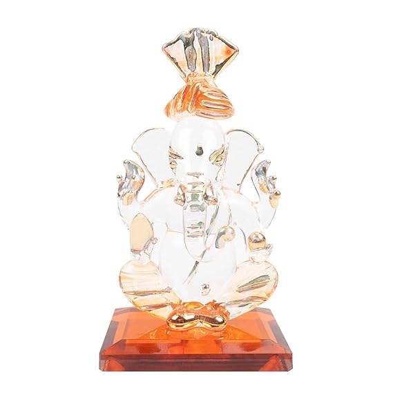 Hindu Gods : Ganesha Crystal Glass Sitting Statue Idol for Worship, Decoration, Car Dashboard and Gift