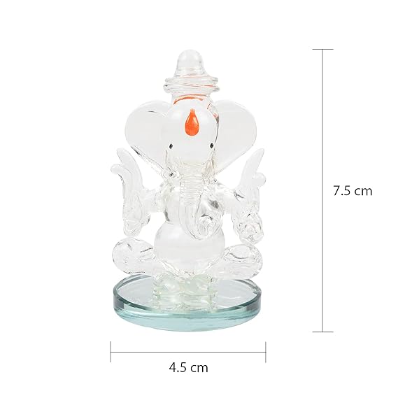Elevate your space with this exquisitely crafted Glass Ganesha Idol, perfect for your car dashboard or as a showpiece for your home altar. Representing prosperity and wisdom, this beautifully detailed Ganesha statue combines elegance with spiritual significance, making it a must-have for any follower of Hindu deities.