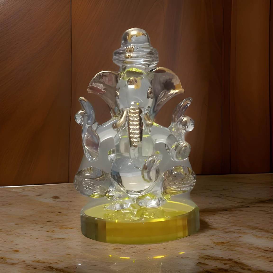 Hindu Gods : Ganesha Crystal Glass Idol for Home, Office and Car Dashboard